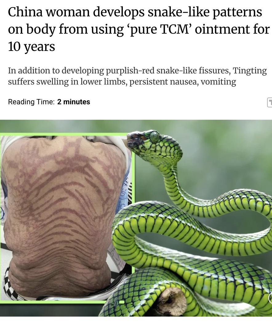 外媒:一位中国女性因长期使用一款声称是“纯中药”的药膏,导致全身出现类似蛇皮的紫红色裂纹,并伴有下肢肿胀、恶心、呕吐等症状。她自10年前腿部出现红斑和瘙痒后,自行购买并使用该药膏,花费超过10万元人民币。 医生诊断她患有继发性肾上腺皮质功能减退症,原因是长期使用含强效激素的药膏,导致激素依赖和肾上腺功能被抑制。 医生提醒,含有激素的皮肤药膏必须在医生指导下使用,否则可能引发严重健康问题。
