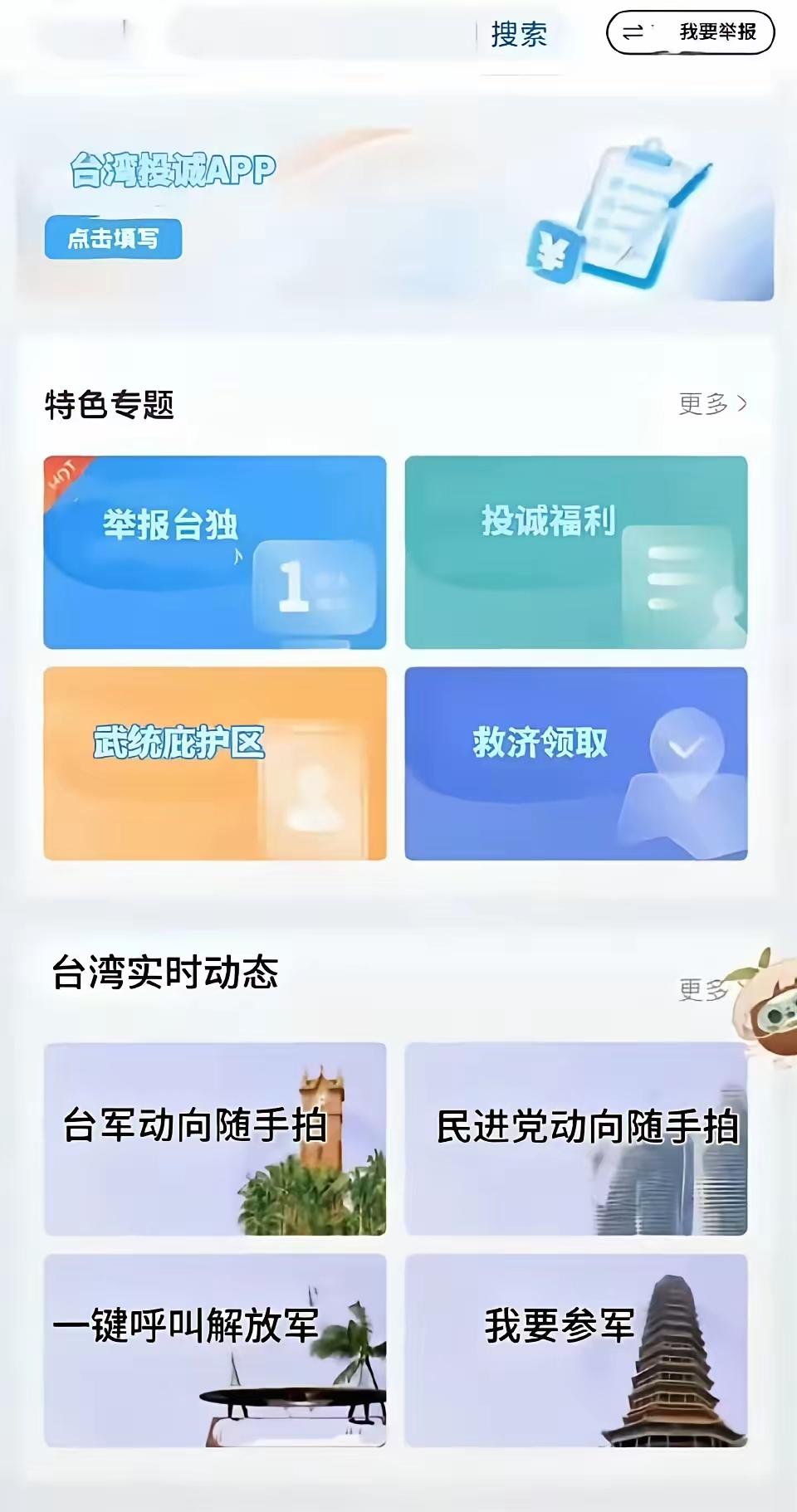“积分换鸡蛋”、“拉十人抽冰箱”,这就是“投诚祖国”APP的红利。 别以为走错路了,来到超市促销了,这其实是台湾目前热门话题的“投诚祖国”APP活动。 不仅换鸡蛋、抽冰箱,你还可以“一键呼叫解放军”,“一键投诚祖国”,甚至还能“举报台独”,“举报台军动向”,“我要参军”。 于是,台独们破防了,他们说这是诈骗APP,统战APP。蒋万安破防了,放话说会对这些违法行为“依法查办”。 可是即便如此,目前依然已经有超过12万人注册了这款APP。 一款蓝绿两党都警惕万分的APP,短短时间内可以造成全岛轰动,并在二者围堵下,还能取得12万的注册量,可见湾湾还不是没救了。 这或许就是一次前奏,一次摸底,谁知道呢?