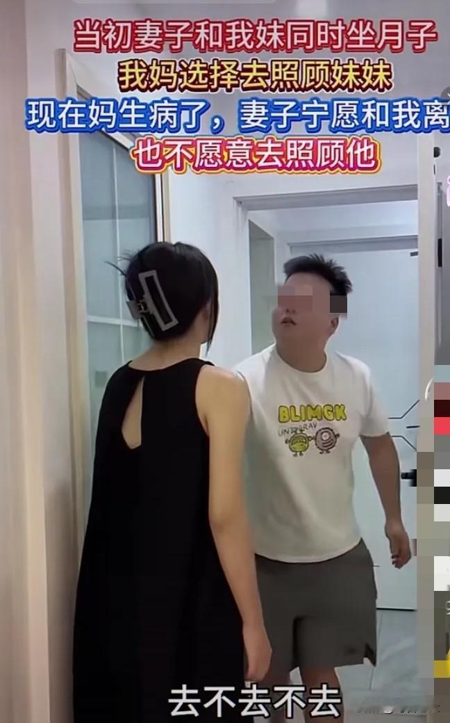 丈夫在屋内强行拉着妻子,要她又去医院照顾生病住院的婆婆,妻子坚决不从。 丈夫:“去!”妻子:“不去!不要碰我!”丈夫:“不去就离婚!”妻子:“离就离!”丈夫:“这可是你说的!”妻子:“是我说的!”这是一视频中夫妻争吵的画面,到底是什么原因造成本来和睦相处的夫妻闹得这么僵持,而且都闹到要离婚的地步。 事情是这样的:“当初妻子和丈夫的妹妹同时坐月子,婆婆选择去照顾女儿。现在婆婆生病住院,妻子宁愿和丈夫离婚,也不愿意去医院照顾婆婆。” 其实这事儿里藏着根刺呢。妻子坐月子时最需要人疼,亲妈刚生产完自顾不暇,婆婆倒跑去伺候女儿,把媳妇一个人扔在月子里熬。 现在婆婆病了,丈夫觉得“该尽孝”,可妻子心里早憋着委屈——当年自己的难处谁记着了? 这不是突然不孝顺,是攒了多年的心寒。丈夫光催着“去照顾”,没想想为啥媳妇不肯去;婆婆当初的选择,早就在小家庭里埋下了不公平的种子。 现在闹离婚,哪是突然翻脸,分明是旧账翻出来扎了心。 各位读者你们怎么看?欢迎在评论区讨论。