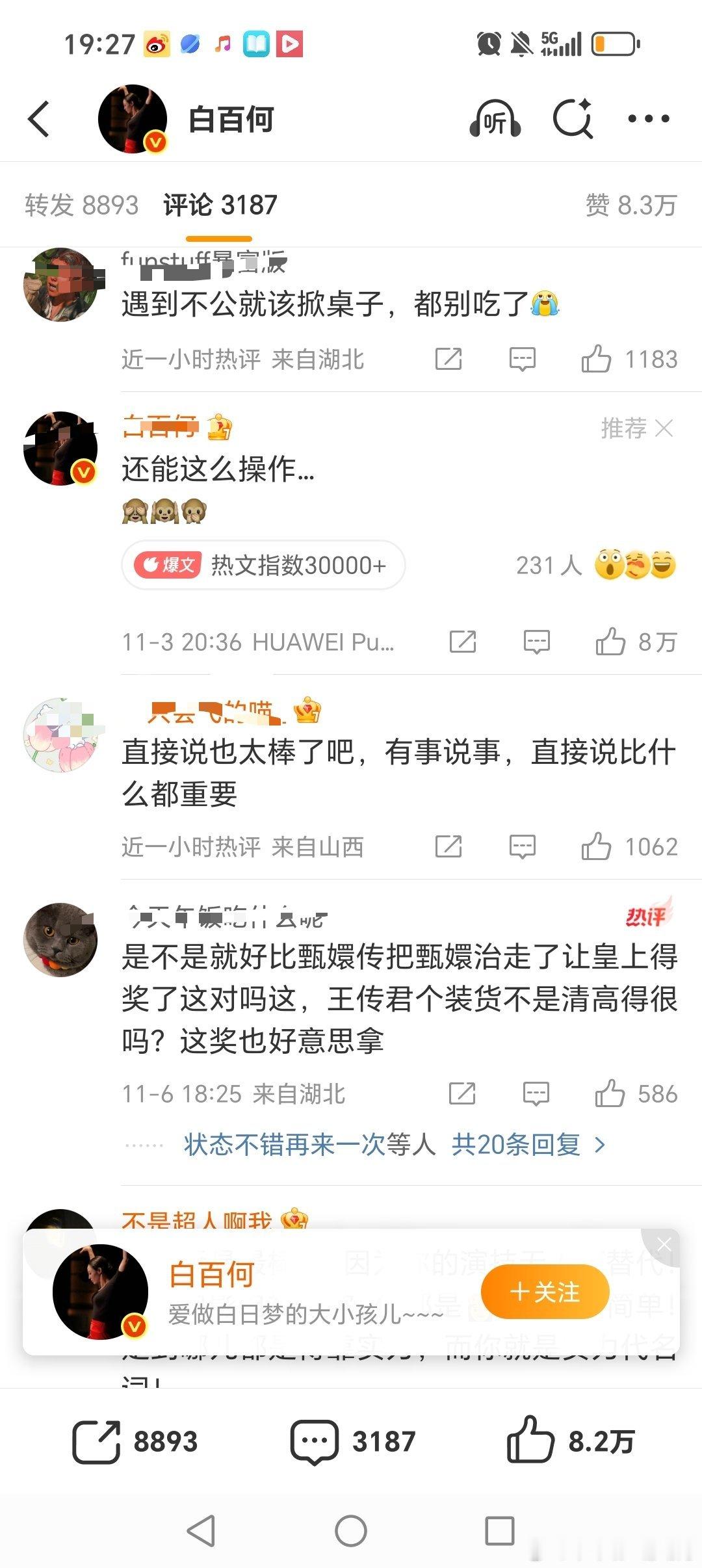 白百何微博评论区好热闹……