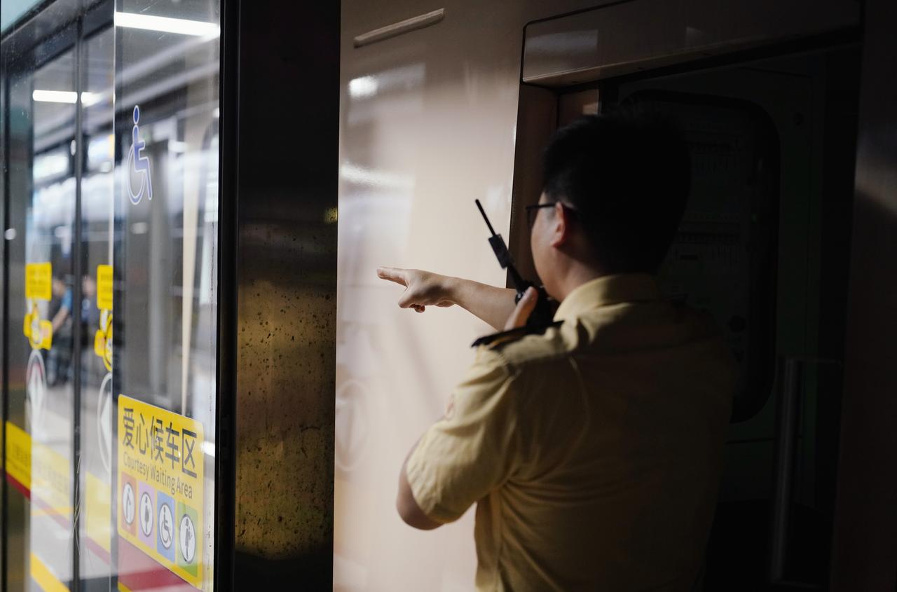 身边地铁人列车司机确认空隙安全。(图:袁彦昌)