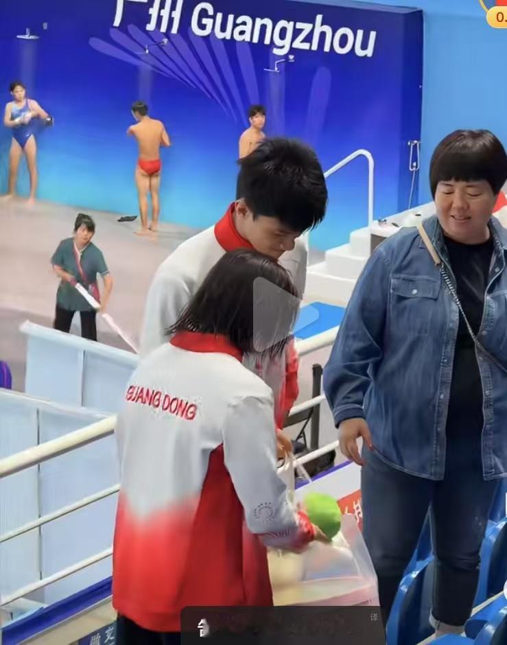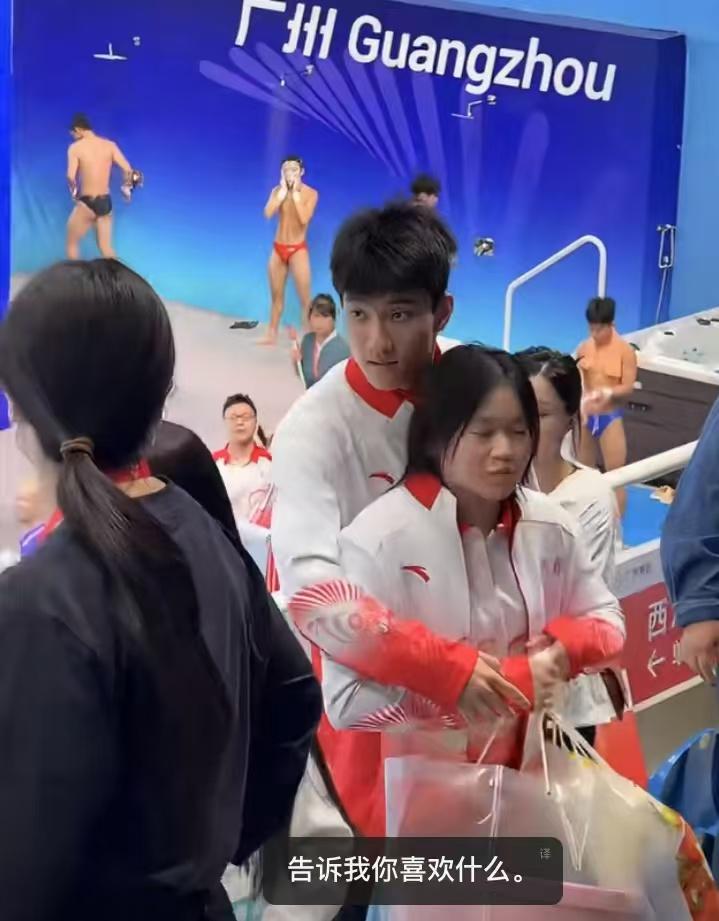 炸裂!全红婵被一帅哥抱住了! 第一次见全红婵害羞,被帅哥整个怀抱着在胸前,后面的人全都惊呆了!大家都在吃瓜,脸上的表情跟我的一模一样! 全红婵去拿娃娃,这帅哥就帮她提着,两人对视的时候,这帅哥眼睛都是放着星星光芒,他不会喜欢上我们全妹了吧[偷笑][偷笑]这么甜蜜的互动,我想知道这位帅哥是谁,他为什么一直跟着全红婵,而且全红婵为什么这么自然的让他怀抱?谢嫂和师娘母女也在,这瓜惊不惊讶,看看后面那几个在淋浴的人表情就知道了!