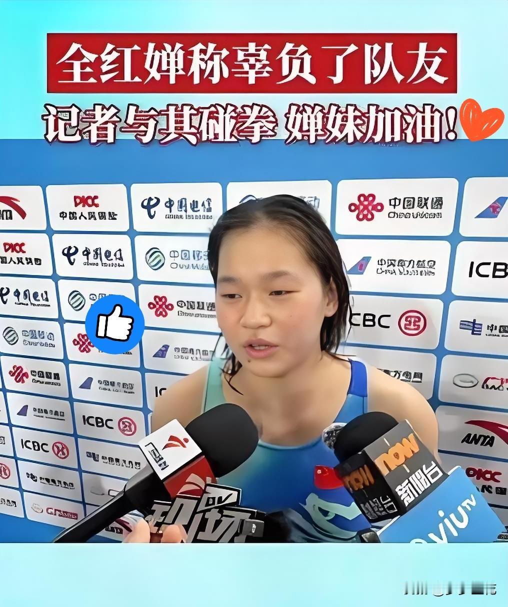 全红婵称辜负了队友 全红婵回应无缘奖牌: 我仍很棒,特别开心 今晚全妹的比赛成绩出来了,我一点都不意外,甚至可以说早已预料到会是这样的一个结果。 这姑娘真是拼了,她带伤上场,咬牙坚持,完成了所有的比赛,对得起她身上的这条队服,值得点赞! 王伟莹,这个老将真的是拼了,为了实现她的奥运梦想,牺牲小我,完成大我的精神令人敬佩。 为了拿到巴黎奥运会的入场券,她拼尽全力,临时组队,在团体、单人、双人和全能中四个项目上都表现得非常出色,充分体现了她身为老将的经验和临场发挥能力以及刻苦训练的成果! 比赛的结果并不是最重要的,最重要的是她们在赛场上的拼搏和表现,给我们树立了榜样,指引我们前行的方向! 网友热评:婵宝拿没拿奖牌都不重要,只要她能开开心心,快快乐乐就好,因为她伤愈复出大家都能理解,最起码不管拿第几名她也开心的笑了,没有哭哭啼啼,她善良,直爽,心里素质绝佳,没一点杂念,这种真实本能让粉丝们更喜欢她,爱她! 还有网友说:全妹带伤拼完全场太牛了!和王伟莹新组合拿第五也很棒,健康完赛就是胜利,你们都是最棒的,继续加油![赞][赞][赞][赞] 婵宝还感谢粉丝关注跳水 支持自己,友友们让我们为她点赞加油吧!