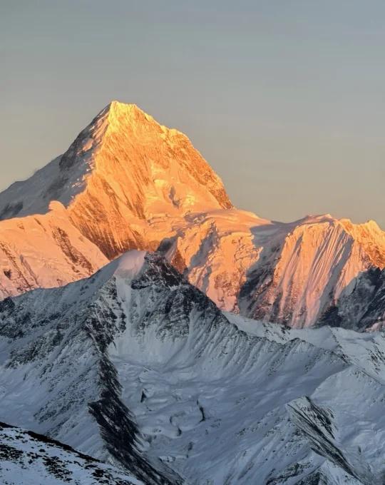 完美的贡嘎雪山日照金山11月4号 为了今天的晴天我们改了行程,决定先去子梅垭口再去冷嘎措,都做到了,越野路段一百公里,两处海拔四千四百多,步行爬山累得要死,山上冷啊,但一切都值得了[笑哭]日照金山 贡嘎雪山