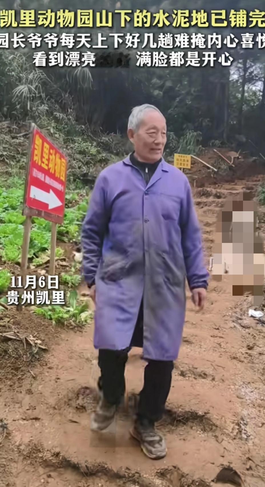 凯里动物园山下的路已经铺上了水泥路,冯爷爷每天上下不知道多少趟来看这路,他说“这路修的太漂亮了”,第一个带娃来动物园的客人,爷爷热情的接待拍着他的肩膀说说“你来,进去,不用买票了”,看的出来爷爷对这些改变可太满意了! 想象一下之前没路,动物的口粮爷爷怎么搬上去的年龄这么大的爷爷,这么难走的路冯爷爷坚持10年,可想而知,修好了路对他来说是多少开心的一件事儿了。 希望以后山下停车位不会有贪心的人收停车费,也希望这20块钱门票不要再有人逃票了,更不想过段时间热度过了…说老爷爷年纪大了,让他退休再迎来新的园长!凯里深山动物园 凯里动物园园长