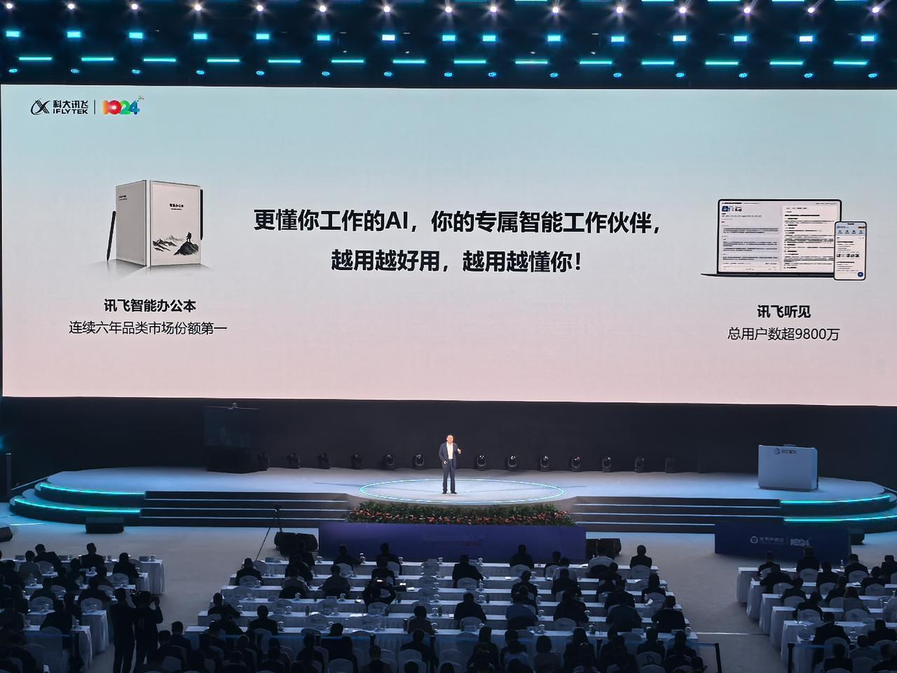 科大讯飞1024开发者节 合肥有个科大讯飞,真好。上午的发布会刚刚结束,刘庆峰总在台上两个多小时,演示星火的最新成果以及AI 对百业的赋能和应用,科技让生活变得越来越好。下午还有系列Ai主题论坛,今天可以尽情补Ai的课,未来已来! 合拍君在现场,见证美好正在发生!