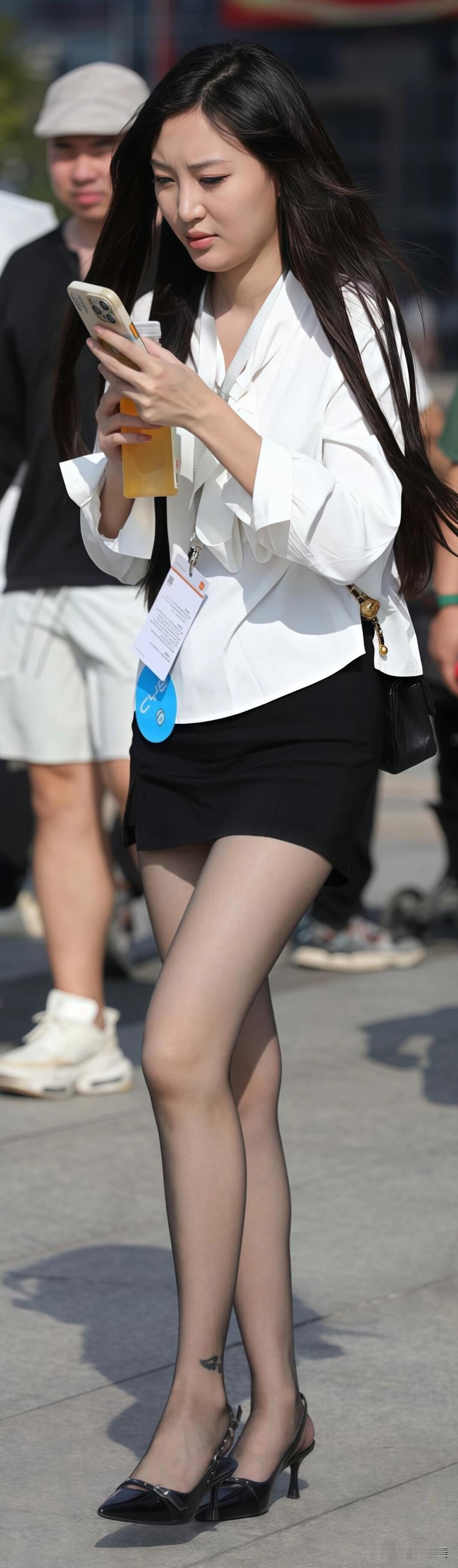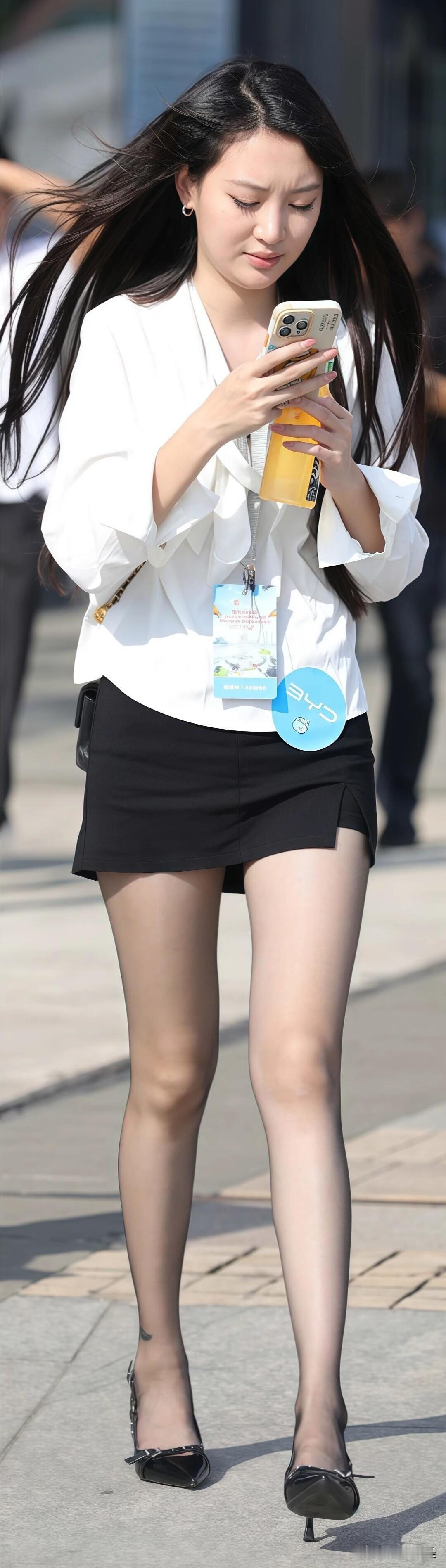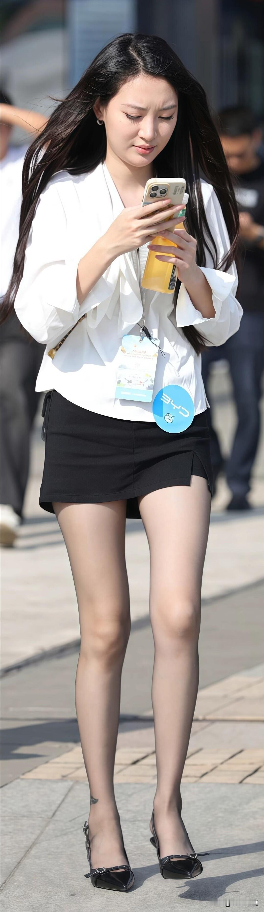 白色荷叶边上衣,优雅又温柔,搭配黑色短裙,简约中带着精致,轻松穿出职场与日常的双重魅力。