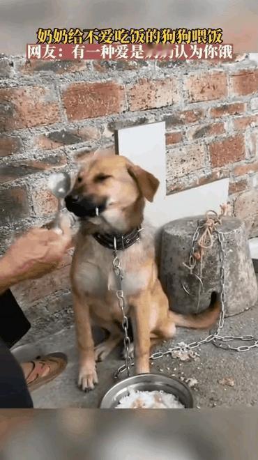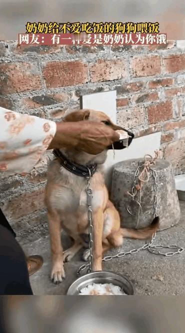 笑不活了!广东,因狗子不爱吃饭,所以奶奶每天给狗子做完饭后都会主动喂它吃。可是狗子就是闭着嘴巴不吃,奶奶就一手抓着它脖子里绳子,一手拿着小勺子喂,这画面简直是太宠爱了。网友:有一种爱是奶奶认为你饿! 广东一位女子看着老家奶奶常年独自生活,心里总惦记着那份孤单,思来想去带回一只狗狗,想让毛孩子给奶奶的日常添点热闹。   可她没料到,这只初衷是陪伴的狗狗,很快就成了奶奶掌心的“重点关照对象”。   奶奶打一开始就瞧不上所谓的城里狗粮,在她心里,真正的疼爱就得是亲手做饭。   每天清晨,她都会专门给狗狗煮上一碗白米饭,耐心晾到不烫嘴,再端着碗、搬个小板凳坐在院子里,拿着小勺准备投喂。   狗狗天性不爱吃米饭,每次都凑到碗边闻闻就转身,可奶奶哪能允许“孩子”饿肚子。   只见她一手轻轻抓住狗狗脖子上的绳子稳住身形,一手拿着小勺,哪怕狗狗把嘴闭得严严实实,凭着够大的力气也能慢慢撬开,一勺一勺把米饭送进去。   久而久之,狗狗形成了条件反射,只要看见奶奶端着碗、搬起小板凳,就立马夹着尾巴躲起来,那生无可恋的模样,仿佛在诉说着这份“甜蜜的烦恼”。   它不是不明白奶奶的好意,只是实在消受不起这顿顿不落的白米饭,可面对奶奶满眼的关切,也只能无奈配合,乖乖接受这份沉甸甸的宠爱。   这段投喂的画面被传到网上后,瞬间戳中了无数网友的笑点和回忆。   大家纷纷调侃,这狗狗活得比人还金贵,却也跟着笑称“画面太眼熟”。   有人说,看着狗狗被按头吃饭的样子,就像看到了小时候的自己,每到饭点,奶奶总会端着碗跟在身后,嘴里念叨着“再吃一口”,哪怕已经吃饱了,也得被硬塞几口。   天刚转凉,就被强行裹上厚厚的衣服,明明活动都不方便,还得听着“穿少了要着凉”的念叨。   网友们的调侃里满是共鸣,这份看似“霸道”的投喂,藏着老一辈最纯粹的疼爱。   对奶奶们来说,表达关心的方式从来都直白又实在,无非就是怕孩子饿肚子、怕孩子受冻。   她们不懂什么科学喂养,也不知道年轻人所谓的“适度”,只凭着一辈子的生活经验,把自己认为最好的东西都给孩子。   奶奶对狗狗的执念,和当年对晚辈的牵挂如出一辙。   老家的日子安静又漫长,晚辈们各自忙碌,难得时常陪伴,狗狗的到来刚好填满了奶奶心里的空缺。   喂饭的时光里,她有了牵挂的对象,那份精心准备饭菜、耐心投喂的过程,也让孤单的日常变得充实起来。   而狗狗虽然吃不惯白米饭,却也在这份略显“沉重”的宠爱里,收获了流浪时从未有过的安稳。   如今再看奶奶投喂狗狗的场景,好笑之余更多的是温暖。   那些被追着喂饭、被强行加衣的“支配”瞬间,都是长辈们藏在细节里的爱。   这份爱不分物种,不分年龄,直白又热烈,虽然有时会让人觉得“招架不住”,却也是长大后再也回不去的温柔时光。