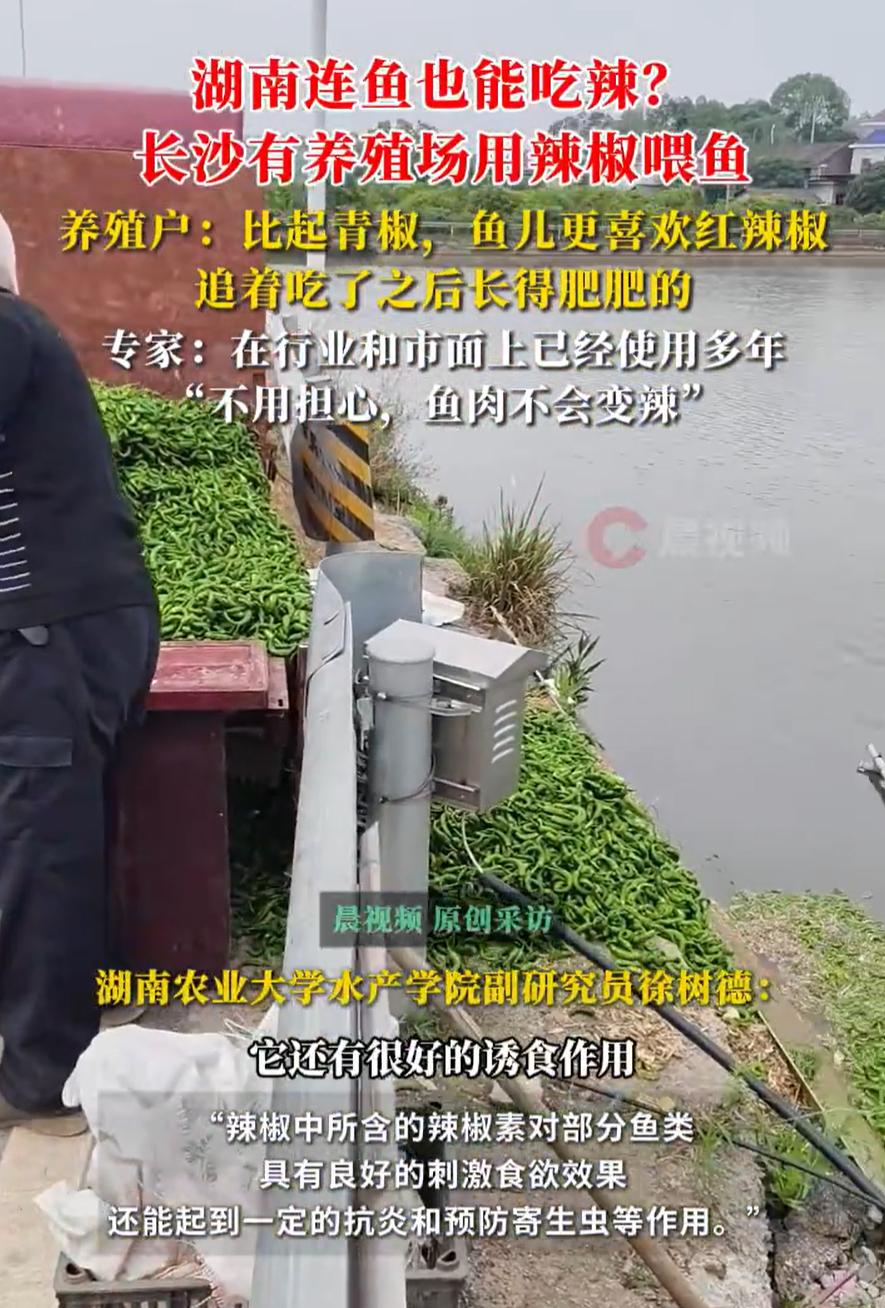 这个鱼场火了!湖南长沙,一男子包了一片水面,养了两千多尾鱼,别人家喂鱼都是撒饲料,他倒好,隔三差五往塘里倒辣椒,最多的时候一天能喂上万斤。网友:以前就知道湖南人喜欢吃辣的,没想到湖南的鱼也喜欢吃辣的啊 塘主匡先生说,他养了两千多尾鱼,夏天最多一天能喂一万斤辣椒。草鱼、鲤鱼最爱那种小红椒,辣味越冲它们越凑过去,投下去二十分钟就能围成一团 不过说起这个发现,其实是有点意外的,一开始,除了常规饲料,他尝试着喂些玉米、辣椒之类的农产品。夏天那会儿,有一批辣椒因为天气原因滞销了,他就买回来试着喂鱼,没想到鱼群还挺爱吃,而且长得还挺壮 不过等到冬天水温一降,鱼活动少了,喂辣椒的次数也慢慢减少,但塘里的草鱼和鲤鱼特别爱追着辣椒咬,尤其是红色的小个头辣椒 有网友调侃说:吃辣椒长大的鱼,这种鱼全身都是辣味的,用来做火锅鱼连辣椒油都省掉了 鱼为什么能吃辣?其实不少鱼类味觉并不发达,对辣味不敏感。辣椒里含的维生素和类胡萝卜素反而可能对鱼体色泽、健康有帮助。而且用滞销的农产品喂鱼,既解决了部分农户的销售难题,又给鱼塘增加了低成本饲料,算是一举两得 而类似的发现还有很多,就像以前有人用西瓜皮喂鸡、用红薯藤喂鱼一样,这种就地取材的思路,既减少浪费,又能把资源用活 当然,这种做法也不适合乱模仿。辣椒虽然能刺激鱼的活动,但要控制量,太多会伤胃和肠道。匡先生也提到,冬天水冷鱼不动,辣椒就不适合多投。真正聪明的是他敢尝试、懂观察、会调整