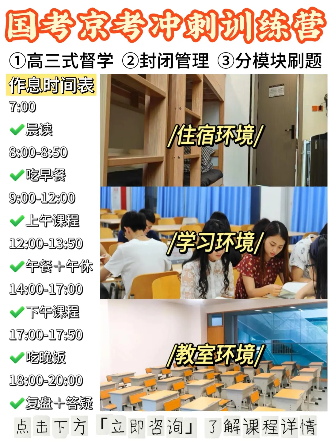 基地位于北京昌平沙阳路,吃住学一步到位,不用在通勤上浪费时间。而且是小班教学,学霸氛围直接拉满,想不卷都难,沉浸式备考效率杠杠的!