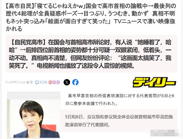 绷不住了…… 高市早苗在台上讲得滔滔不绝, 结果,“四大金刚”在台下睡得整整齐齐 哈哈哈哈!注意看下面这张图。 11月5日,在日本的一场国会辩论中,台上的高市早苗讲得唾沫星子横飞,而台下的四位前首相竟然不约而同地坐在最后一排打瞌睡,睡得昏天暗地! 石破茂双手交叠低头睡得最沉,岸田文雄还时不时扭脖子缓解疲劳,每个人都有自己的“睡姿”,简直可以组个“国会睡梦天团”了。 别以为这只是几位老头精力不济,往深了扒全是日本政坛的烂糟心事。能让四位前首相集体 “掉线”,还不是因为她这施政演说满是保守套路,一边喊着要大干特干,可问到钱从哪儿来、具体怎么落实,全是 “将要探讨” 这类空话。别说前首相,连普通民众都听不下去。 台下这四位 “睡神”,哪是简单的累了?他们可是日本政坛的 “老油条”,分属不同派阀,跟高市早苗的矛盾早就摆上台面了。她的政策能不能落地还两说,这些大佬自然犯不着给她捧场,干脆用打瞌睡表达隐性抗议 —— 反正不在决策核心了,爱咋咋地! 更讽刺的是石破茂,去年 11 月首相选举时就被拍到打瞌睡,当时官方还扯谎说 “感冒吃了药”,这次四位一起睡,总不能是集体感冒吧? 明眼人都知道,他们是对这种流于形式的国会辩论早就审美疲劳了,毕竟质询来应答去,大多是走过场,根本解决不了经济乏力、物价飞涨这些真问题。 不过视频一传出来,舆论直接炸锅。网友骂得特实在:“拿着纳税人的钱睡大觉,这就是所谓的政治担当?” 岸田文雄扭脖子的动图被疯传,调侃归调侃,背后全是失望 —— 民众对政治体系的信任早就碎成渣了。 可再骂也没用,日本对国会议员的监督本来就形同虚设,只要按时打卡,哪怕全程睡到底也不会受罚,最后就是不了了之。 说到底,这 “瞌睡门” 就是日本政治积弊的照妖镜。一方面是派阀斗争把政坛搅得乌烟瘴气,卸任的大佬们抱着 “事不关己” 的心态当旁观者,哪管新政府政策合不合理;另一方面是制度漏洞惯坏了政客,没有硬约束就没有敬畏心,把国会当成打卡下班的地方。 更要命的是,这些前首相平均年龄一大把,麻生太郎都年过八旬了,国会辩论动辄拖几小时,体力跟不上是真的,但既然扛着议员头衔,要么提前调整状态,要么干脆请假,在台上装睡糊弄人,本质就是对选民的辜负。 高市早苗本来想借这场辩论立威,结果风头全被后排的 “睡神” 抢了,简直是场黑色幽默。可笑着笑着就该清醒了:当执掌过国政的人都对国计民生失去兴趣,当严肃的国会变成瞌睡场,那所谓的 “国家未来” 不过是台上喊喊的口号。 这四位前首相的呼噜声,其实是日本政治信任崩塌的声音 —— 不是他们困了,是这个装模作样的政治体系,早就让民众 “睡不醒” 了。 (每天更新,欢迎关注,喜欢文章的可以帮忙点个赞留条评~) 对此大家有什么看法?