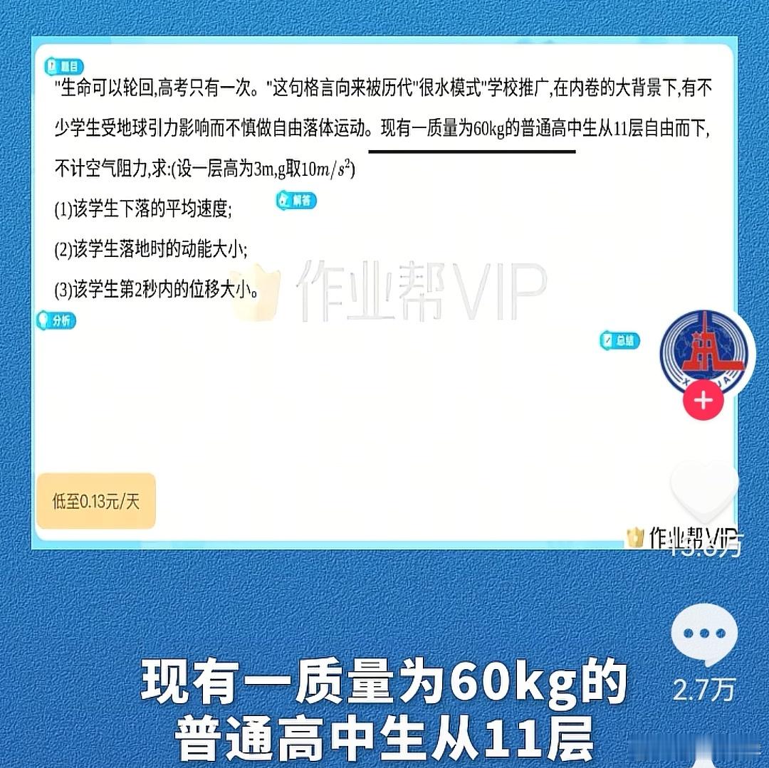 “作业帮”APP竟以学生跳楼为素材题库是精准面向学生群体出题人真是用心险恶~