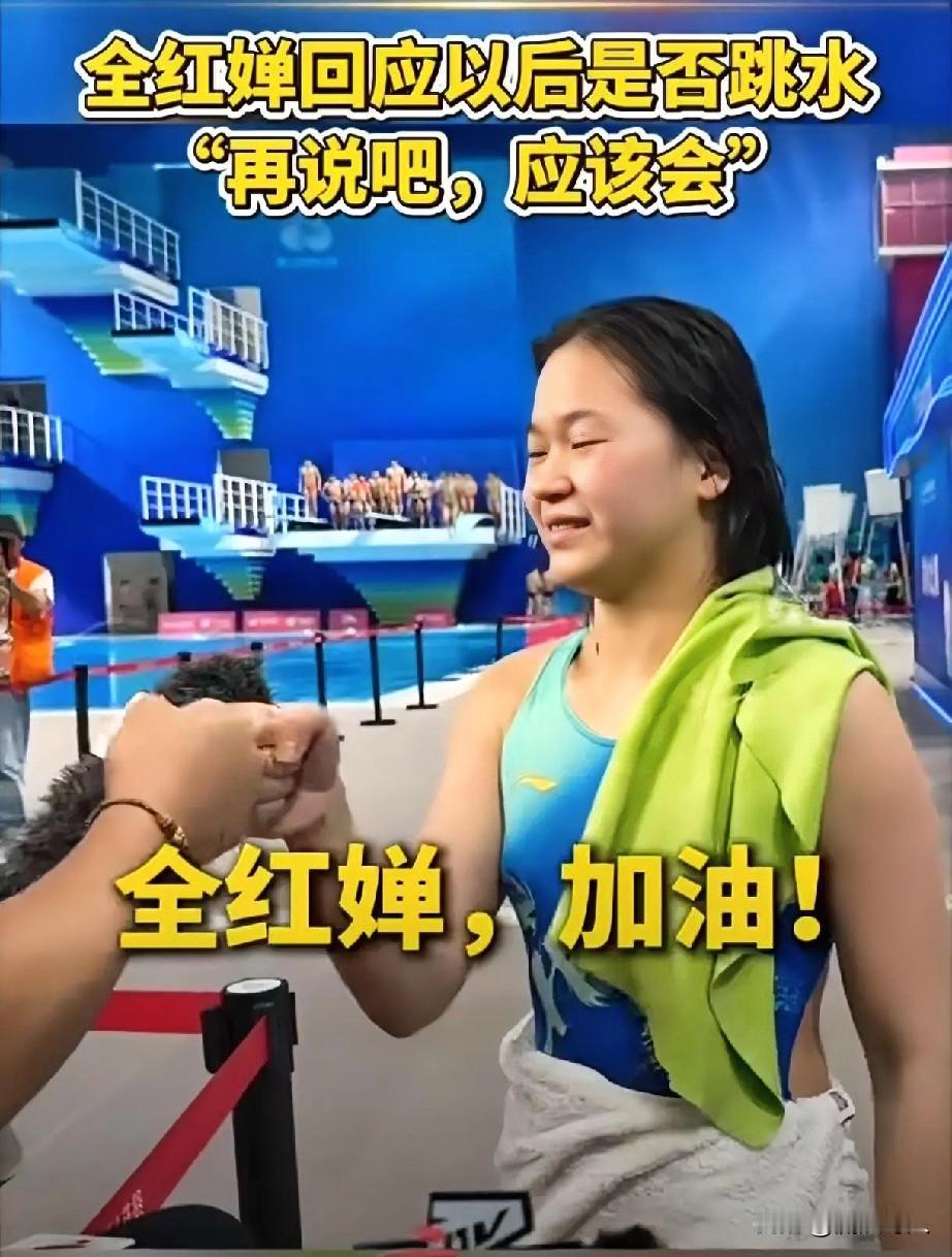 全红婵,近日当被问及“以后还跳不跳水”时 她略带哽咽的微笑回应,有些让人感受到她内心深处的心酸难过和无奈! 当记者问全红婵:“未来我们还可以在跳水池里继续见到全红婵吗” 全红婵这样回应:“再说吧,应该吧,现在还不知道。” 听到她这短短的一句话回应,这字面和语气,有没有让你觉得她对这个跳水舞台是多么的留恋和不舍?? 是不是觉得她面对职业年龄、训练留下的伤痛、身材发育的瓶颈...各种问题的无奈?? 尽管近日,全红婵在十五运会复出仅以获得一金的成绩收官,没有达到巅峰时期的状态,有点不尽人意,但这个跳水小女王在竞技场上的坚毅、乐观、不服输的精神,仍然鼓舞着我们。 看到这个为了梦想,身体上贴满了膏药的小女孩,真的不禁让人鼻酸! 无论未来全红婵是否还能在跳水舞台上展现她的“水花消失术”,但她的佳话和不断进取的运动精神都会永远留在这个运动场上,也鼓舞着每一个有梦想的追梦人! 点燃我梦想的路人 教育 社会百态