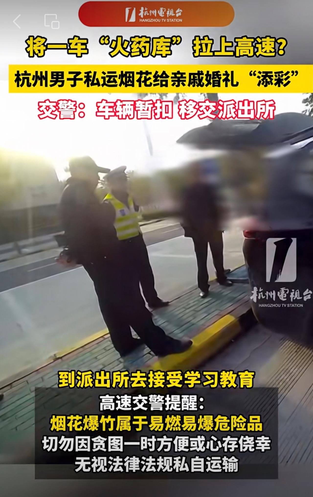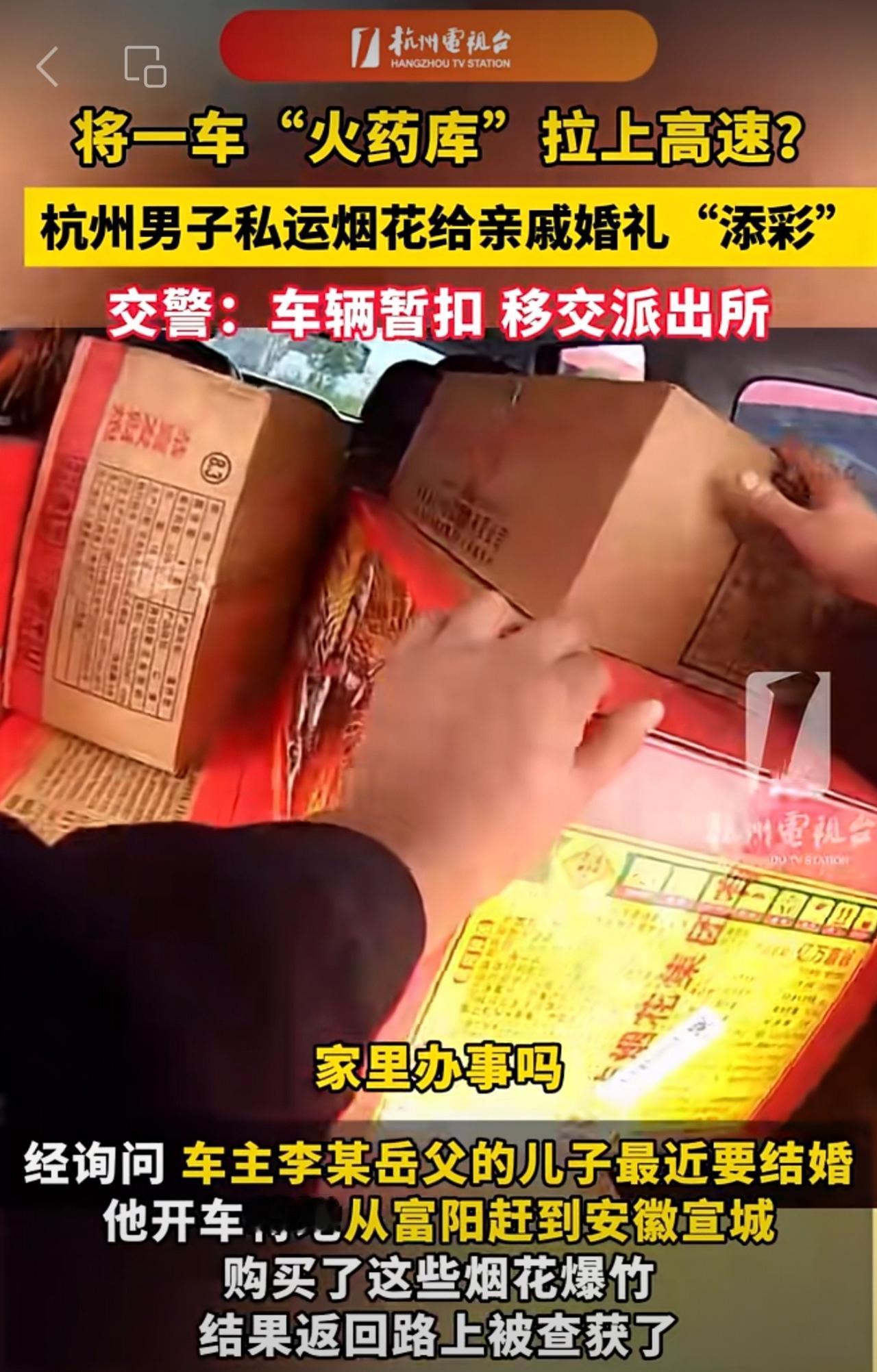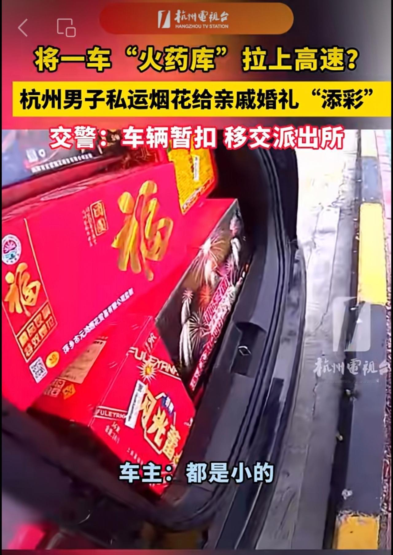 将一车“火药库”拉上高速?杭州 男子私运烟花 给亲戚婚礼 “添彩”,交警:车辆暂