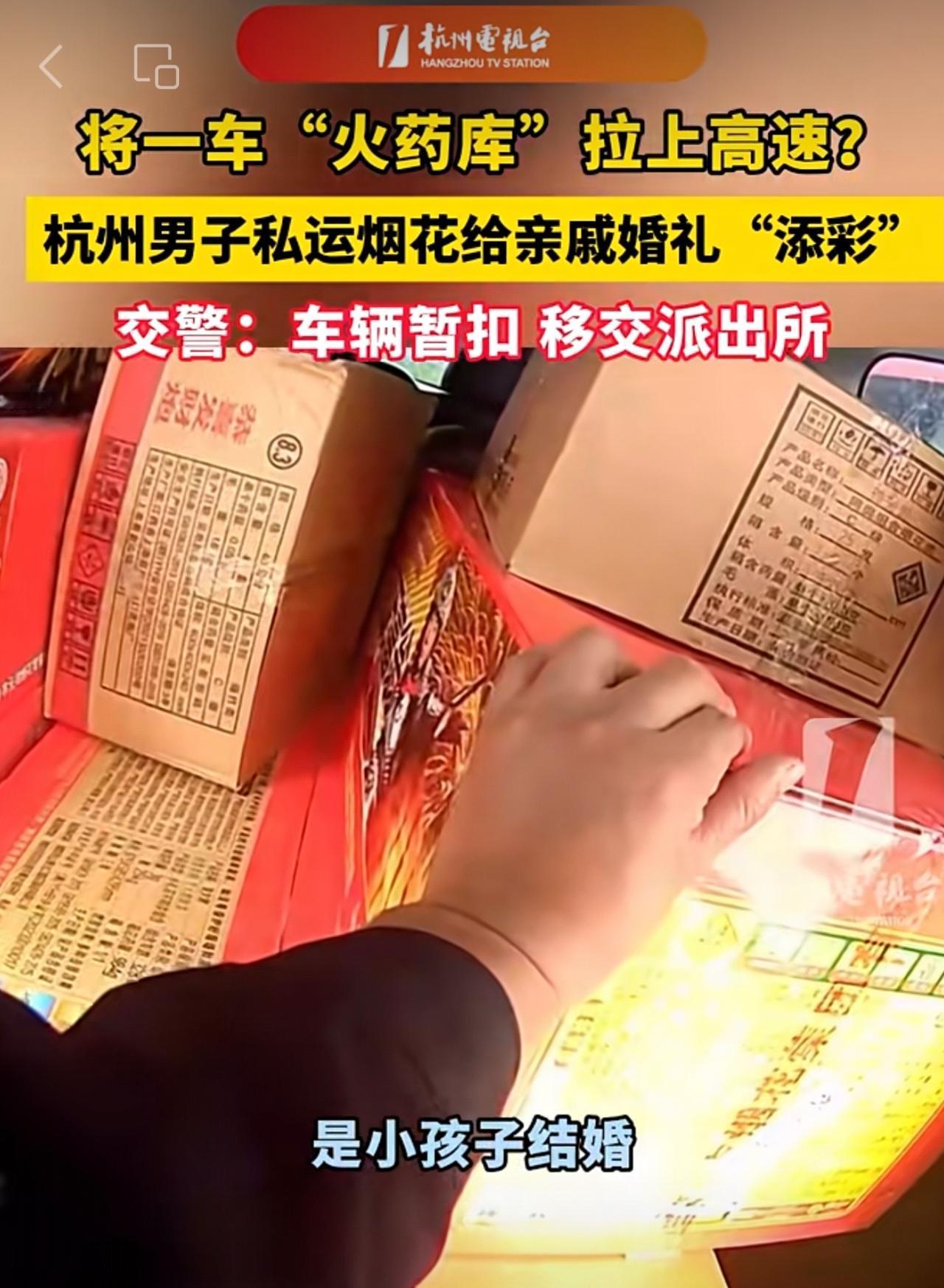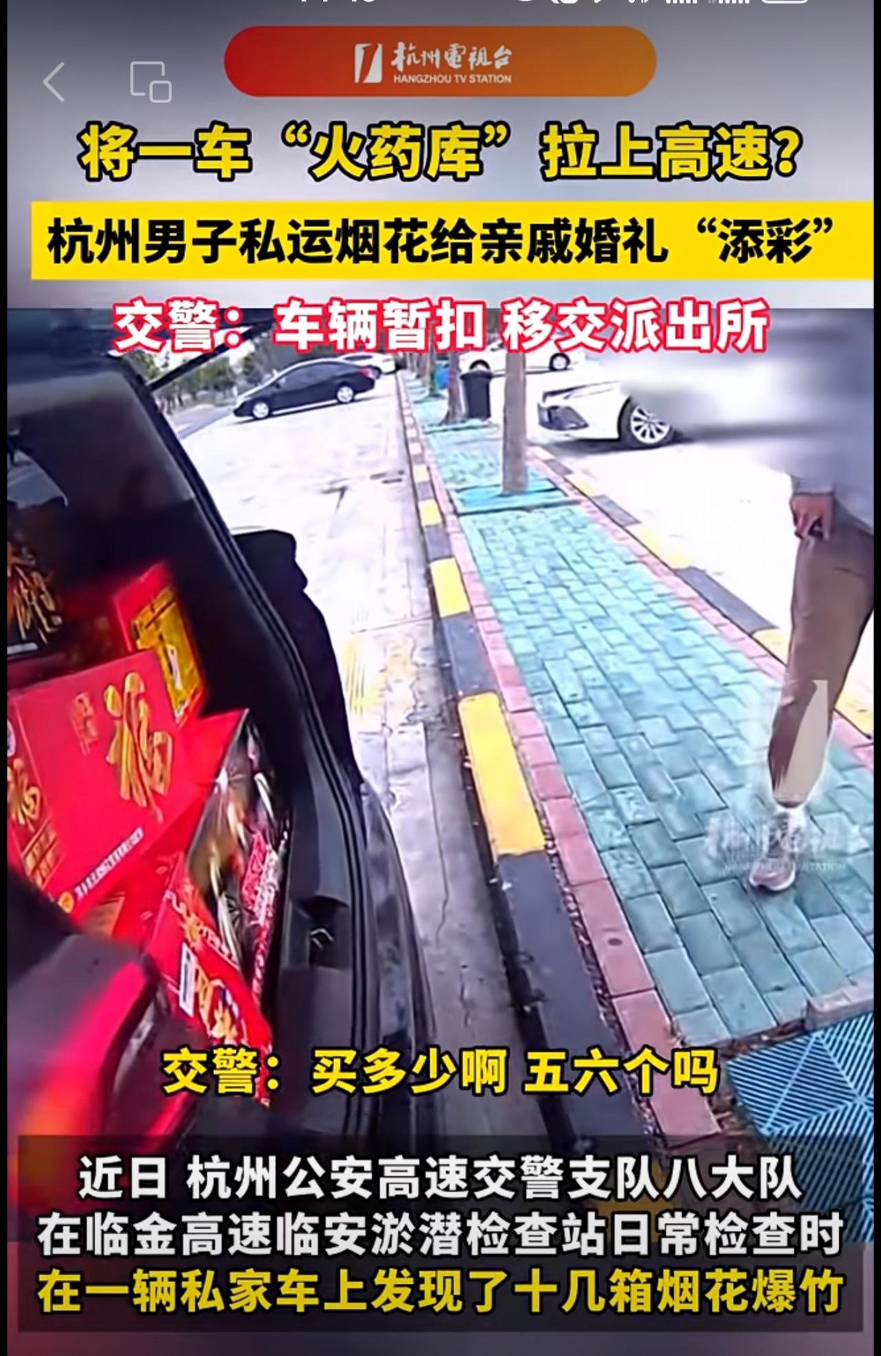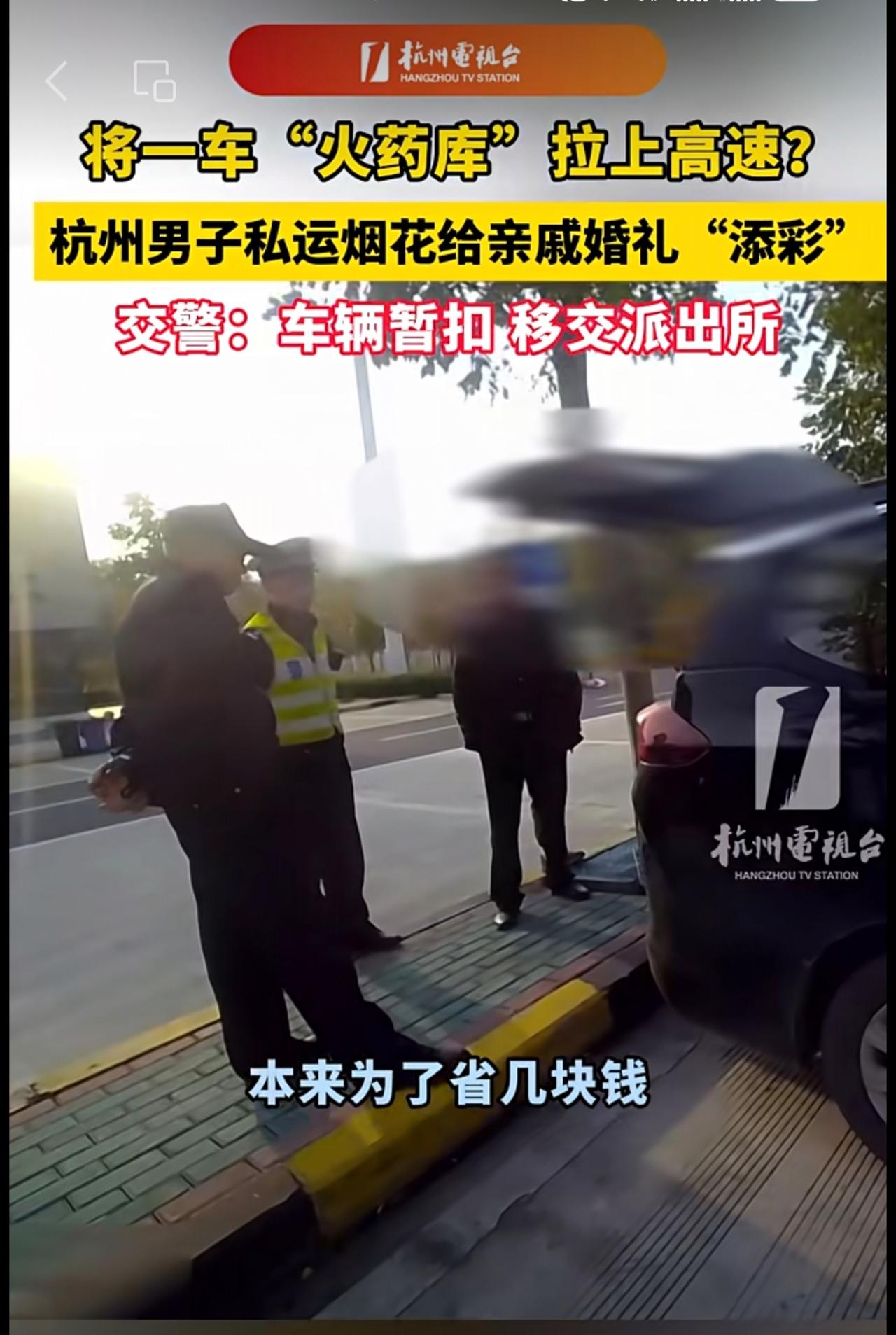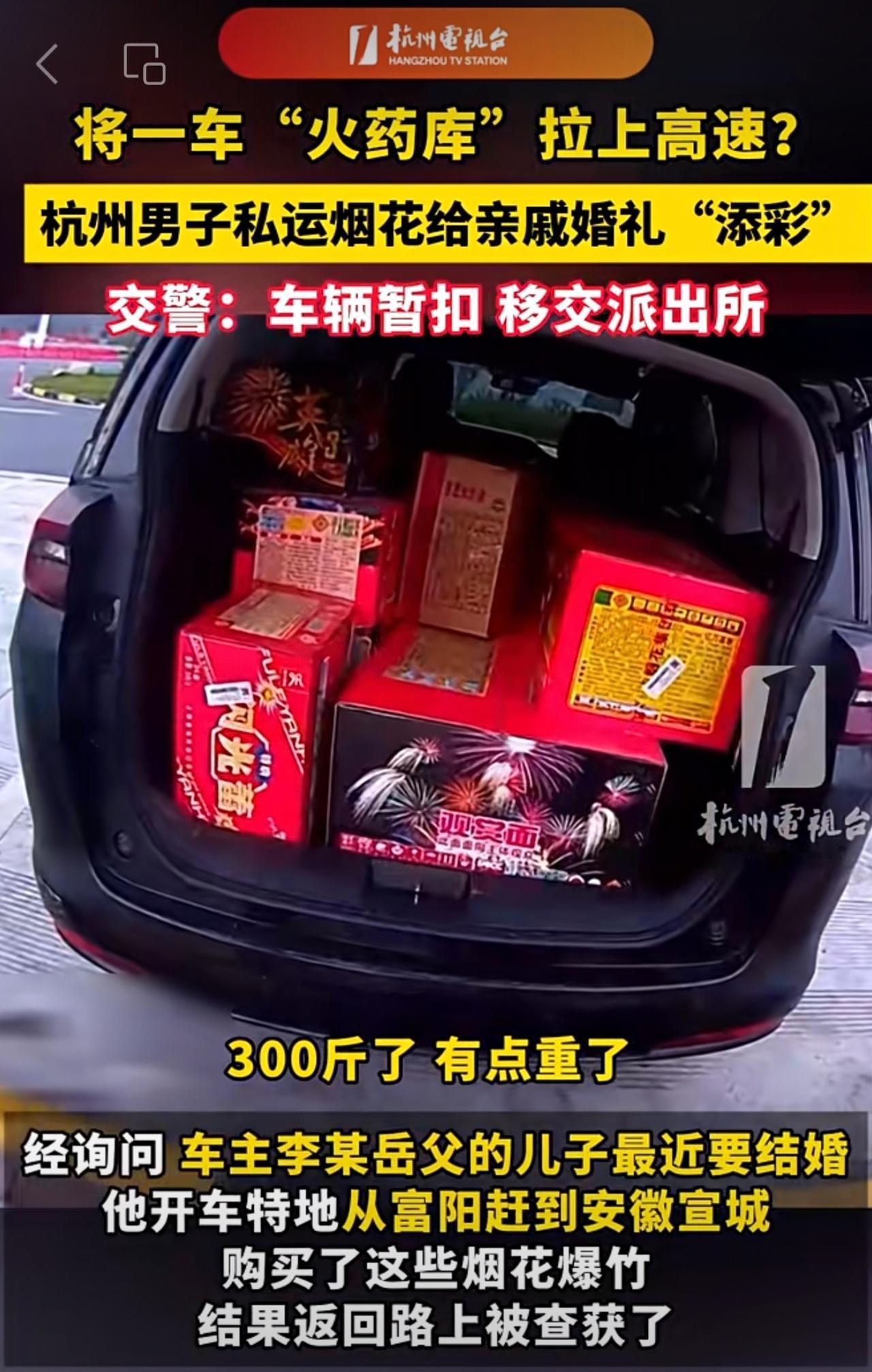 将一车“火药库”拉上高速?杭州 男子私运烟花 给亲戚婚礼 “添彩”,交警:车辆暂