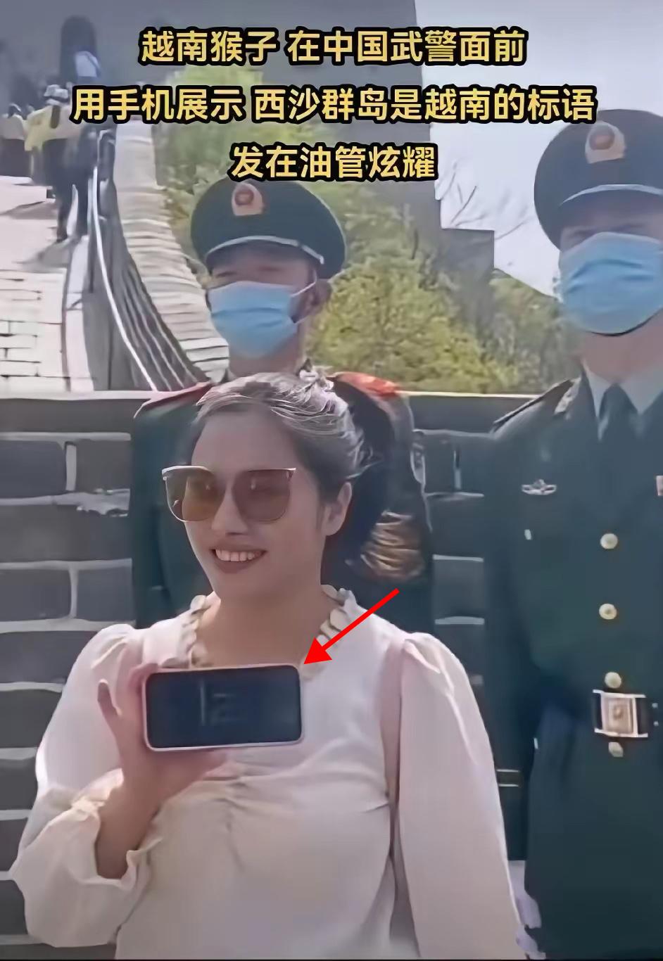 无知至极! 越南女子长城前挑衅中国主权, 录视频发外网 近日,一名越南中年女子在长城游玩时,当着两名中国武警的面,用手机打出“西沙群岛是越南”的越南语标语。 她特意录制下这一画面,发布到外网炫耀,试图挑衅中国领土主权。 视频传开后,网友纷纷愤怒指责其行为嚣张又无知。 中国社科院专家明确指出,西沙群岛自古以来就是中国固有领土,有充分历史和法理依据,国际社会早有公认。 面对这种挑衅,中国主张通过法律和外交途径冷静处理,既维护主权底线,也彰显法治精神。 任何侵犯中国主权的行为,都必将承担相应后果。