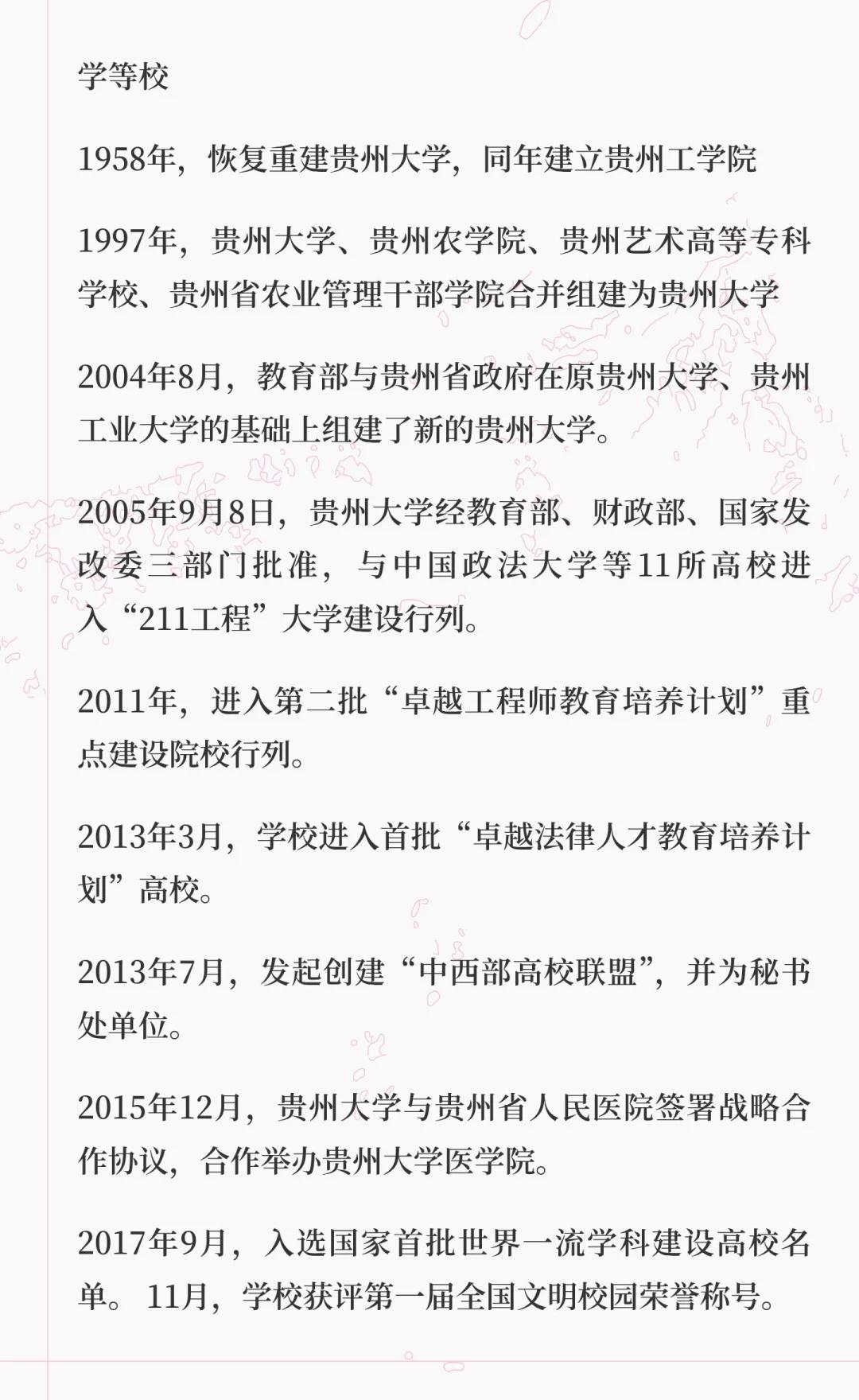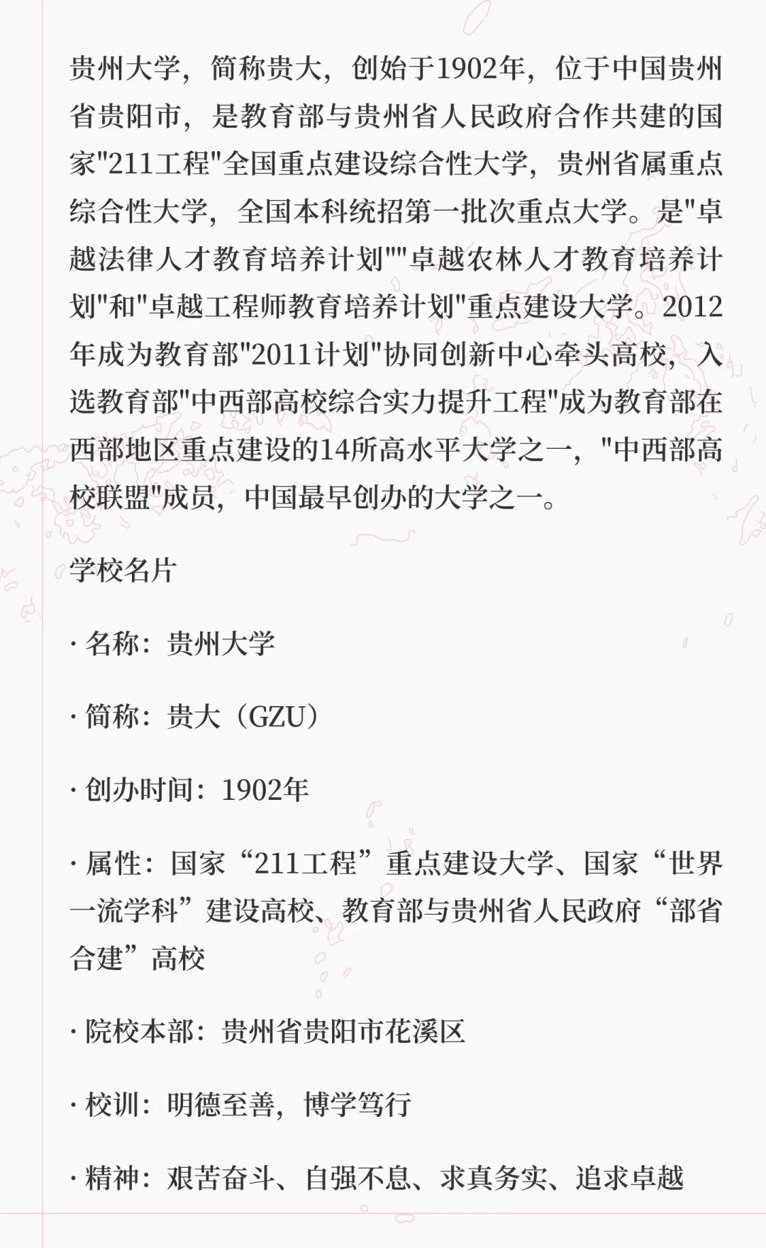 老陈说高校壹佰陆拾叁期之贵州大学 贵州大学,简称“贵大”,创建于1902年,位于贵阳市,是教育部与贵州省人民政府共建的“211工程”重点大学。学校涵盖13大学科门类,拥有多个国家级科研平台,致力于培养高素质人才,服务地方经济社会发展。高校 大学 院校规划 贵州大学 贵州大学生 贵州高校 院校选择