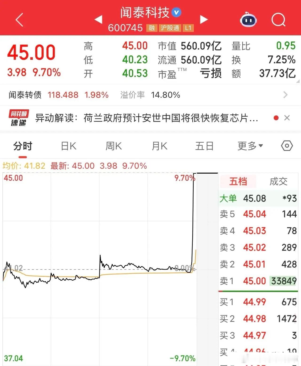 闻泰科技尾盘爆拉!4分钟之内从水下直线拉升逼近涨停!5分钟成交超12亿,发生了什么!