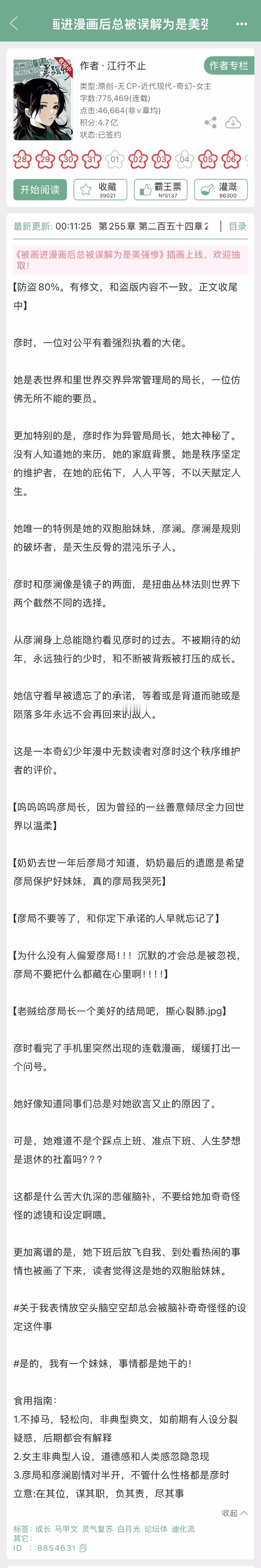 江行不止的《被画进漫画后总被误解为是美强惨》完结啦!轻松向马甲文➕迪化流[开学季]