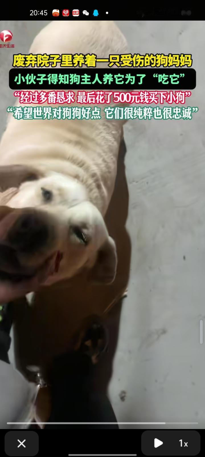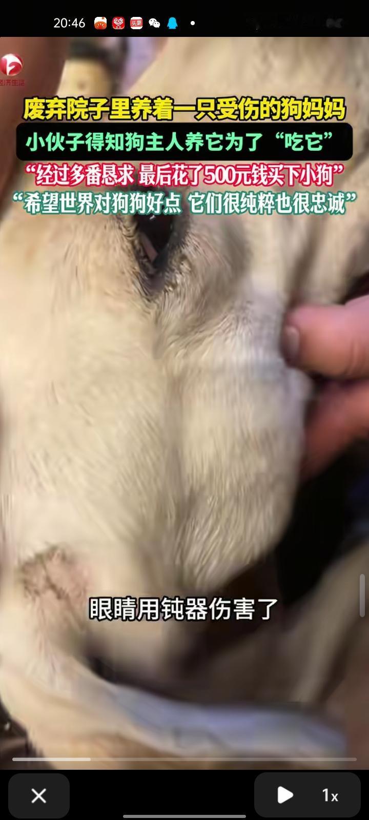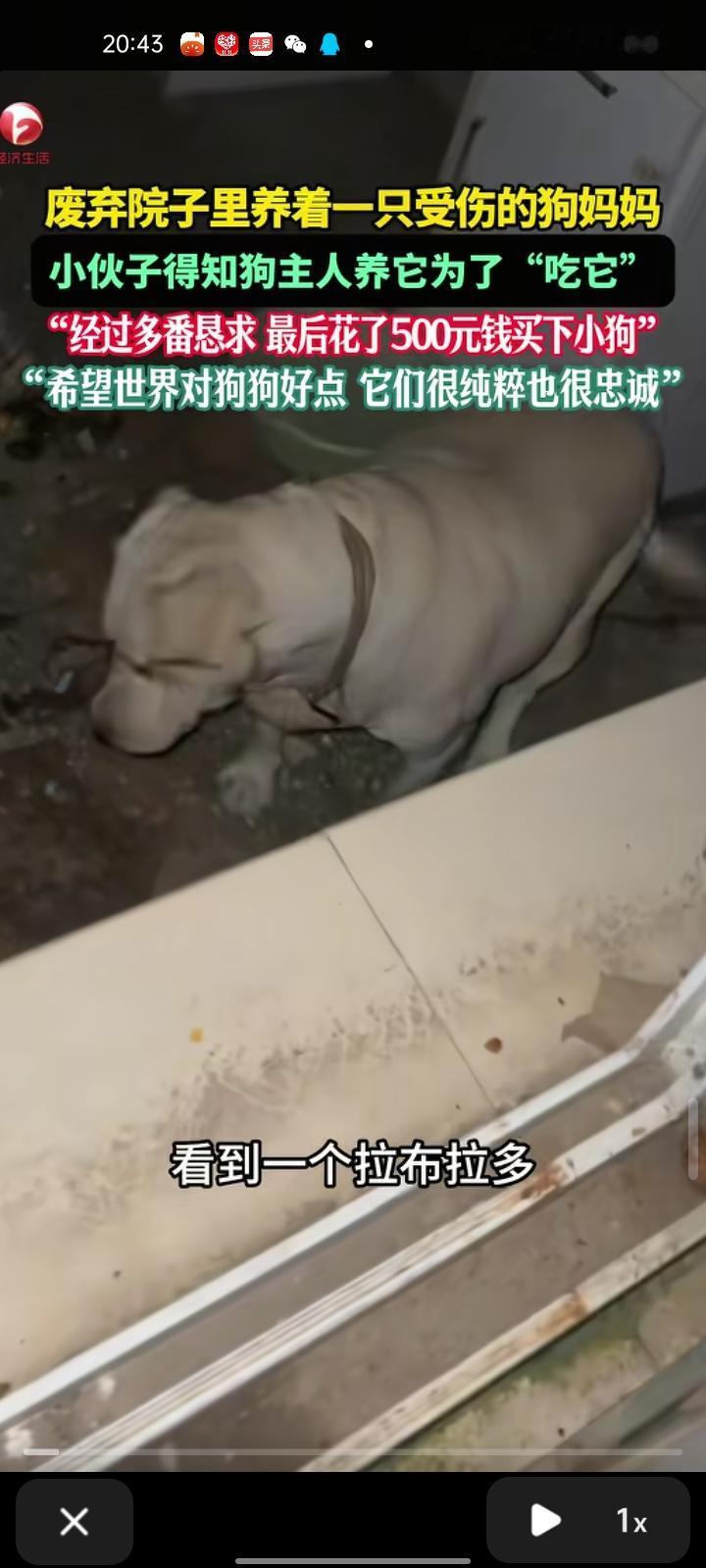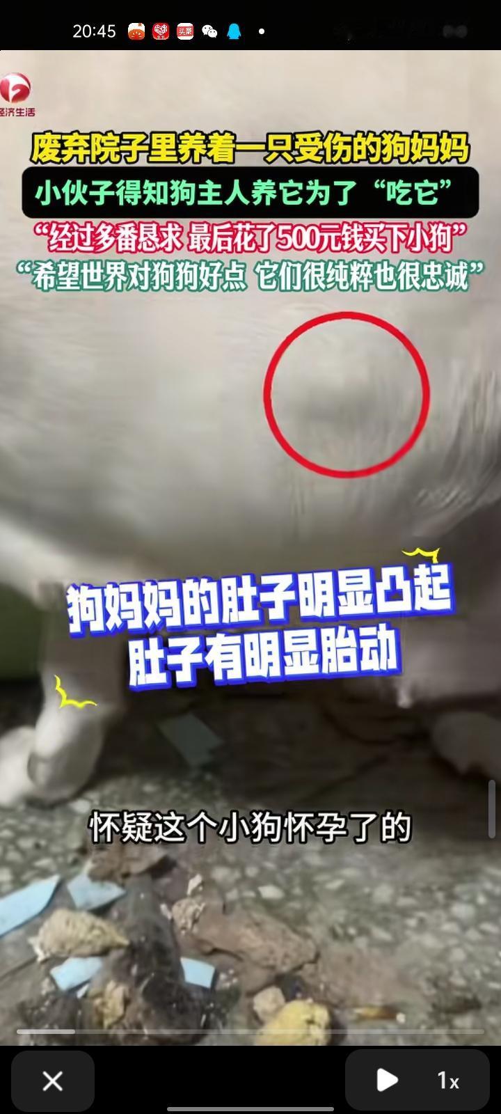 11月5日,驻马店市确山县。网友发视频称,自己在废弃院子里看到狗妈妈,它的肚子明显凸起,肚子有明显胎动,可能是怀孕了,它的眼睛被钝器伤害,眼球少了一半。生活的地方一片狼藉,到处是粪便。随后,自己就去找那个叔叔,说“能不能把这个狗卖给我”,叔叔刚开始不愿意,养狗是为了吃狗肉,最后自己花了500元买下小狗。