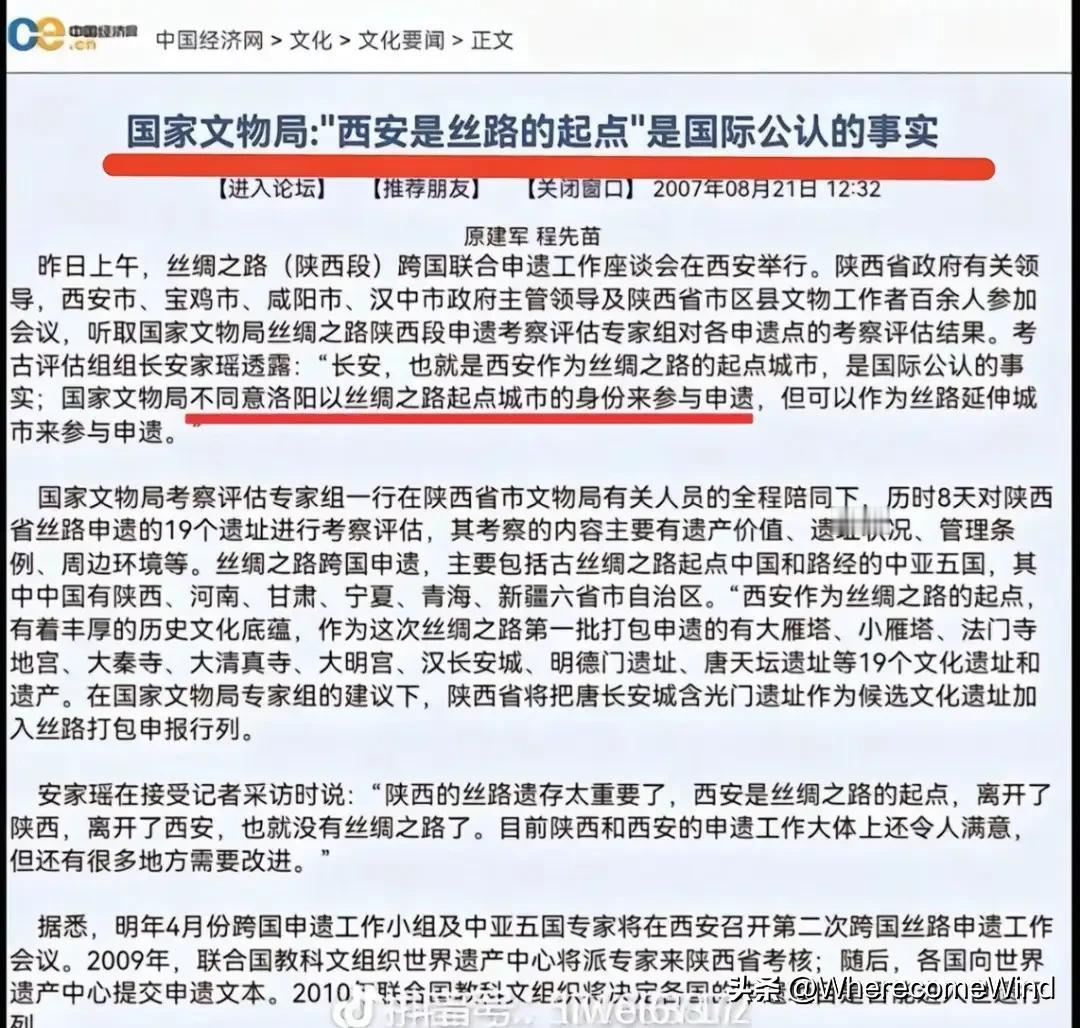 丝绸之路唯一起点(长安)核心佐证汇编 一、申遗专家核心观点摘要 1. 郭旃(联合国教科文组织世界遗产中心亚太部原主任、丝路申遗关键协调人):“长安是丝绸之路无可争议的事实起点,公元前138年张骞从长安出发‘凿空’,这是丝路诞生的标志性事件。申遗名称定为‘长安—天山廊道的路网’,就是为了明确起点的唯一性,洛阳纳入申遗是作为延伸段,核心是其交通廊道功能,而非起点属性。” 2. 景峰(中国文化遗产研究院研究员、丝路申遗技术负责人):“双起点论违背申遗技术文件的核心逻辑——丝路申遗的‘起点’定义是‘文明通道的起源性出发地’,而非‘朝代都城的贸易中转站’。长安对应‘起源’,洛阳对应‘延续’,二者是主次关系,绝非并列关系。” 3. 杜葆仁(陕西省考古研究所原所长、汉长安城考古权威):“汉长安城未央宫是西汉政令中心,张骞出使西域的决策、筹备均在此完成,出土的西域器物、简牍文献直接印证了其起点功能。洛阳虽在东汉承担丝路贸易功能,但缺乏‘开辟’层面的考古与文献支撑,无法构成起点依据。” 4. 米歇尔·佩赛特(国际古迹遗址理事会前主席、丝路申遗国际评估组负责人):“从世界遗产的价值评估标准来看,丝绸之路的‘突出普遍价值’核心是‘首次打通欧亚官方通道’,这一价值的诞生地只能是长安。将东汉洛阳视为起点,既与公元前2世纪的开辟时间线冲突,也不符合‘起源性’的评估原则。” 二、历史文献中的起点论述佐证 1. 《史记·大宛列传》(司马迁,西汉权威史料):“张骞,汉中人,建元中为郎。是时天子问匈奴降者,皆言匈奴破月氏王,以其头为饮器,月氏遁逃而常怨仇匈奴,无与共击之。汉方欲事灭胡,闻此言,因欲通使。道必更匈奴中,乃募能使者。骞以郎应募,使月氏,与堂邑氏故胡奴甘父俱出陇西。” (明确张骞出使起点为西汉都城长安,经陇西出发,无洛阳相关记载) 2. 《汉书·西域传》(班固,东汉官修史书):“自玉门、阳关出西域有两道……初,武帝感张骞之言,甘心欲通大宛诸国,使者相望于道,一岁中多至十余辈。” (追溯丝路起源仍以汉武帝时期张骞通西域为开端,长安为决策与出发核心) 3. 《后汉书·西域传》(范晔,南朝宋史学家):“西域内属诸国,东西六千余里,南北千余里,东极玉门、阳关,西至葱岭。其东北与匈奴、乌孙相接。初,张骞言欲通大夏,乃令骞使月氏,始得西域要领。” (即便记载东汉西域事务,仍认可张骞从长安出发为丝路之始,洛阳仅为东汉时期的管理枢纽) 4. 《大唐西域记》(玄奘,唐代亲历者著述):“窃以金宝之泉源,通商之奥壤……始自长安神邑,终于西海流沙,凡所经见,百有三十八国。” (玄奘西行仍以长安为起点,印证长安作为丝路起点的历史延续性与唯一性) 5. 《通典·边防》(杜佑,唐代政书):“汉兴,初开西域,有三十六国,其后稍分至五十余国,皆在匈奴之西,乌孙之南,咸属汉焉。张骞始奉使,自长安出,往月氏,径匈奴中。” (唐代权威政书明确丝路开辟始于张骞自长安出使) 不要让双起点论侵蚀了丝路申遗的初衷。