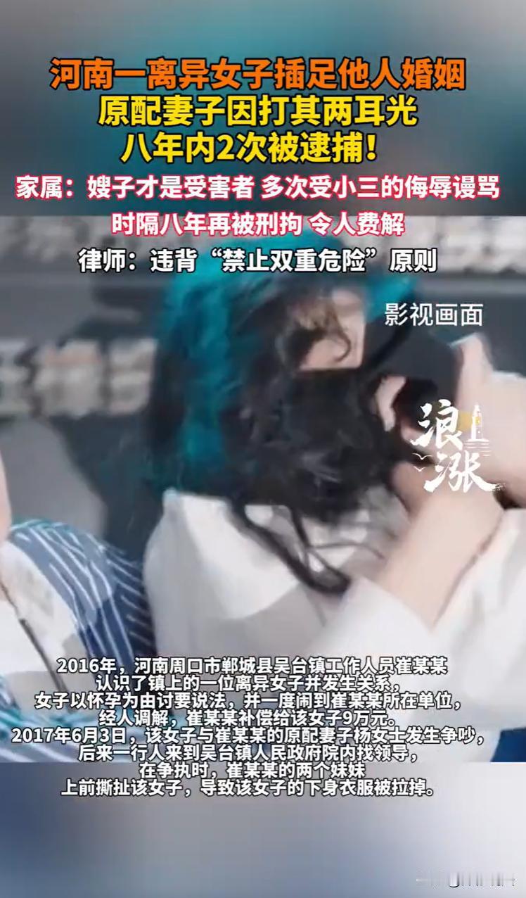 河南郸城,一男子在镇政府工作,与一名离异女子发生关 系后,因女子怀孕,到单位讨要说法,支付9万元补偿。然而,事情并未平息,男子的妻子与该女子在街头爆发争吵,吵到镇政府大院。期间,男子的两个妹妹情绪失控,上前撕扯该女子,将其下 身衣物当众拉下。事后,两个妹妹因这一过激行为被法院以侮辱罪判刑。而男子的妻子因在现场打了该女子耳光,先被拘留15天、罚款500元,随后,她更因涉嫌强制猥 亵、侮 辱罪被羁押四个多月后取保。时隔八年后,男子的妻子再次因侮 辱罪被警方逮捕。   据悉,崔某某是某地镇政府工作人员,与妻子杨女士结婚后,结识了镇上一位离异的女子,两人逾越了边界,发生了关 系。   很快,女子声称自己怀孕了,并以此为由向崔某某“讨要说法”,一度将纠纷闹到了崔某某的工作单位,试图通过施加舆论和工作压力来解决此事。   为了平息风波,在中间人的调解下,崔某某于2017年4月与该女子达成协议,并支付了一笔高达9万元的补偿款。   2017年6月3日上午,崔某某的妻子杨女士与那位女子在街上发生了争吵,争吵之后,情绪激动的女子再次选择前往崔某某单位,要找领导理论。   崔某某的母亲得知消息后,也赶到了镇政府大院,并与该女子发生了争执。   紧接着,更激烈的场面出现了,崔某某的两个妹妹闻讯赶来,她们直接上前撕扯该女子,在激烈的肢体冲突中,该女子的下 身衣物被强行拉掉。   冲突过后,女子报了警,警方介入调查,认为崔某某两个妹妹的行为涉嫌侮 辱罪,将两人予以逮捕归案。   随后,检察院对崔某某两个妹妹以侮 辱罪提起公诉。   法院经审理后认为,崔某某两个妹妹的行为已经构成了侮 辱罪,判处崔某某的大妹妹有期徒刑十个月,判处小妹管制二年。   杨女士曾在在该女子脸上打了几下。   但是,警方当初认为杨女士的行为已经涉嫌治安违法,以杨女士殴打他人,对杨女士处以拘留15天并罚款500元。   2017年10月,公安机关继续启动对杨女士的追责,认为杨女士的行为已经涉嫌犯罪,以杨女士涉嫌强制猥 亵、侮 辱罪被刑事拘留,经检察院审批后,执行逮捕。   不过,在羁押了四个多月后,杨女士被取保候审。   时间流逝,当杨女士一家以为这场持续已久的噩梦终于可以翻篇时,新的波澜再次掀起。   2025年9月28日,杨女士连同崔某某的一位表妹,再次因侮 辱罪被刑事拘留,随后于10月25日被警方执行逮捕。   据崔某某大妹妹所说,此次逮捕与八年前的那次冲突直接相关。   崔某某一家想不明白,杨女士是整个事件中最大的受害者,在冲突现场动手后已接受了行政处罚,为何又反复被羁押。   目前,案件正在进一步侦办中。   那么,从法律角度,这件事如何评价?   1、杨女士的行为到底是否涉嫌侮 辱罪等刑事犯罪?   《刑法》第二百四十六条规定,以暴力或者其他方法公然侮 辱他人或者捏造事实诽 谤他人,情节严重的,处三年以下有期徒刑、拘役、管制或者剥夺政治权利。   据家属陈述,杨女士在女子倒地后,在涉事女子脸上打了两下。   《治安管理处罚法》第四十三条规定,殴打他人的,或者故意伤害他人身体的,处五日以上十日以下拘留,并处二百元以上五百元以下罚款;……   公安机关最初将杨女士打耳光的行为定性为殴打他人,并据此给予行政处罚,也无明显问题。   但是,在没有其他新证据的情况下,杨女士的行为不会对涉事女子身体造成过重的伤害,按理不会上升到刑事犯罪的高度。   然而,警方在行政处罚后,又以杨女士涉嫌强制猥 亵、侮 辱罪进行刑拘和逮捕。   这说明,杨女士的行为不仅仅是打耳光那么简单。   可是,杨女士被羁押四个多月后取保候审,且长达八年,没有任何动静。   《刑事诉讼法》第七十九条规定,人民法院、人民检察院和公安机关对犯罪嫌疑人、被告人取保候审最长不得超过十二个月。   所以,杨女士应该早已解除了取保候审,按理是没有犯罪嫌疑了才对。   2、杨女士为何八年后再次逮捕?是否过追诉时效?   《刑法》第八十七条规定,犯罪经过下列期限不再追诉:(一)法定最高刑为不满五年有期徒刑的,经过五年;……   侮辱罪的最高刑为三年以下有期徒刑,其追诉时效为五年。   本案发生于2017年,至2025年已超过八年,表面上看,似乎已过追诉时效。但是,该时效可以中断。   鉴于该案在2017年就已经刑事立案,且设施女子一直在持续控告,这就导致追诉时效中断,司法机关可以继续追诉。   而杨女士八年后再次逮捕,最可能的原因是公安机关发现了新的证据,这些证据足以证明杨女士在当时的行为比已知的“打耳光”更为严重,涉嫌犯罪。   当然,也不排除是检察院或上级机关启动监督程序,要求对全案所有参与者的责任进行重新、彻底的调查,从而发现了当年未被充分追究的犯罪事实。   对此,您怎么看?