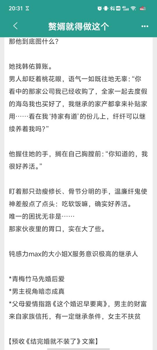 《赘婿就得做这个》by烟二 刚完结的文,一共58章 迟钝貌美大小姐vs带资入赘继承人 正文完结,不用等更新! 青梅竹马,先婚后爱 男主视角暗恋成真 现代甜宠日常流小甜饼! 男主婚后家务全包,人夫感拉满! 洗衣做饭乖乖等老婆发零花钱