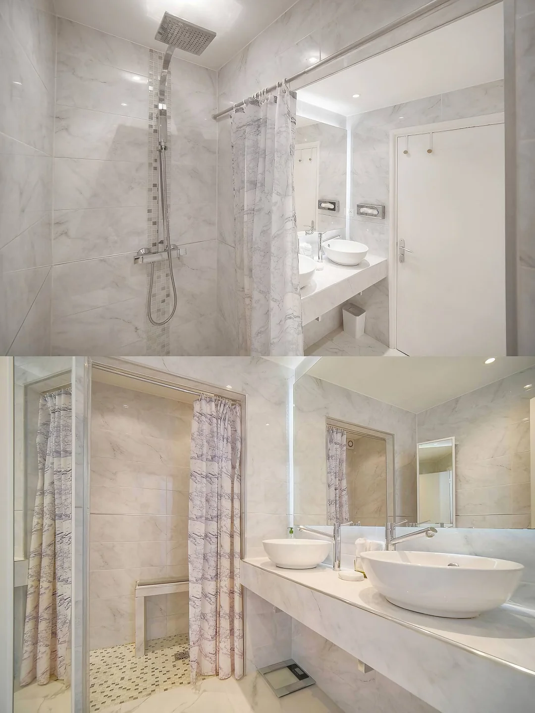 民宿有80平米,十分的宽敞,有2间卧室和1个沙发床、宽敞明亮的厨房、1个卫生间和一个可以俯瞰地中海的180°景观的露台。摊行李箱和自由走动都完全没问题