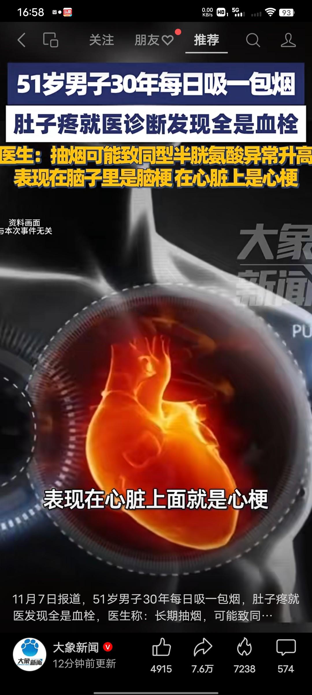 吸烟有害健康都知道,吸烟也会导致血栓形成有人知道吗? 51岁男子30年每日吸一包