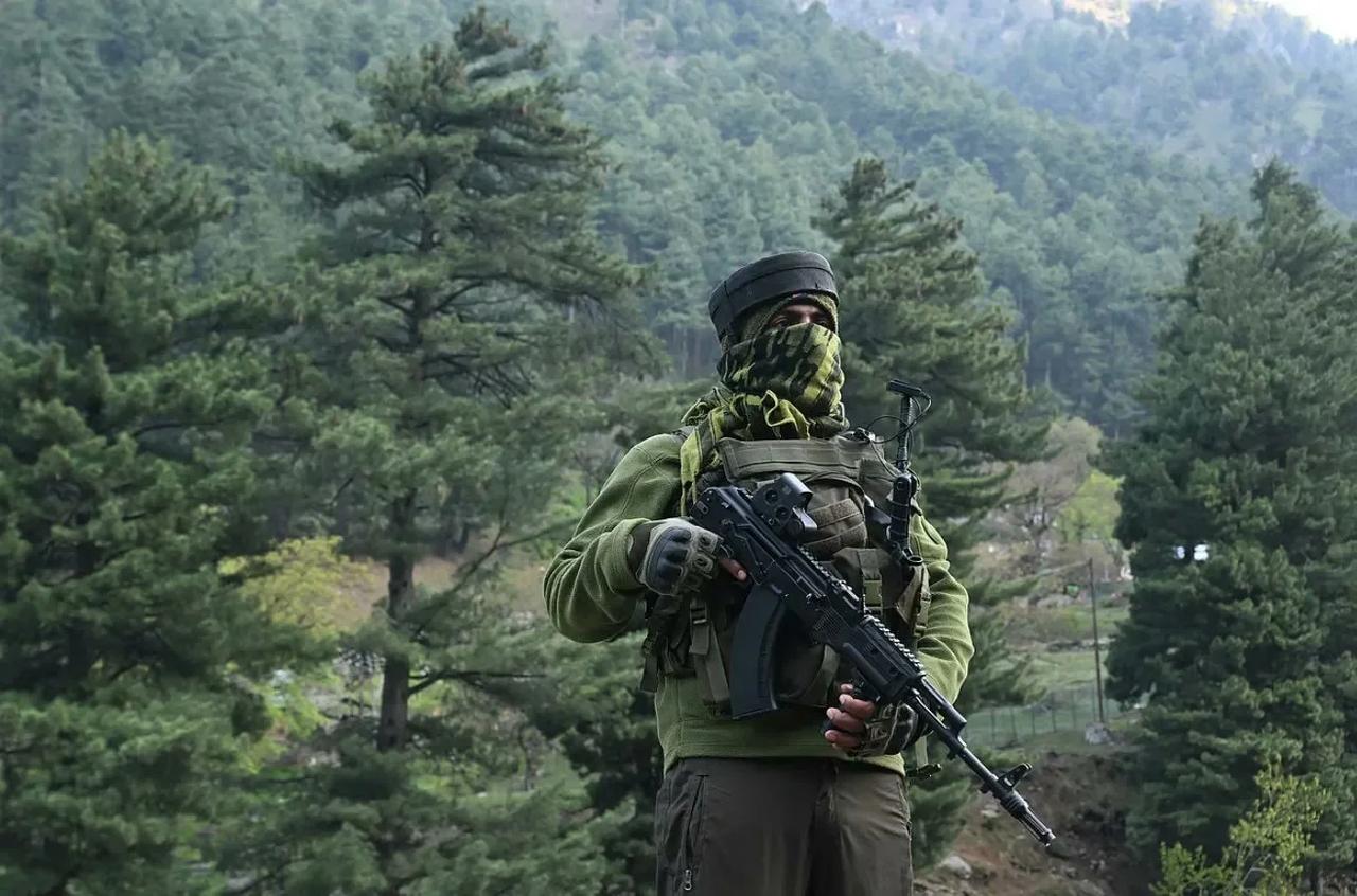 印度士兵装备AK-203 7.62毫米突击步枪。