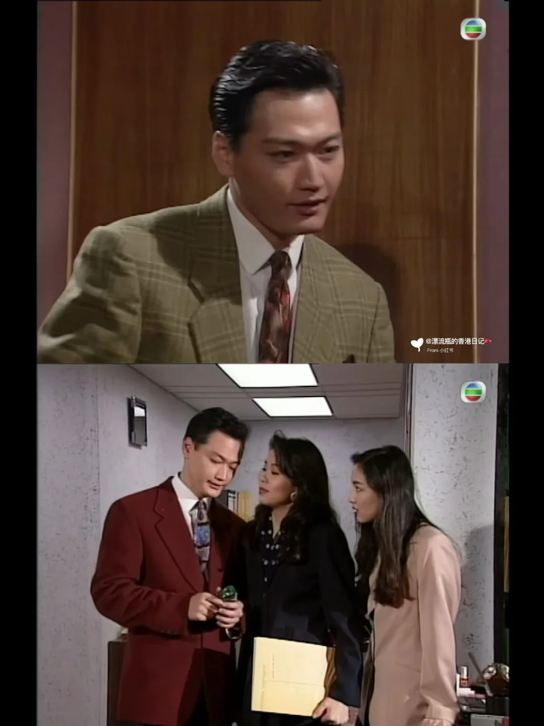 剧里的女演员们美得各有特色,年轻的郑秀文可爱娇媚,男演员们的西装颜色也都很活泼💖红西装、绿西装居然也可以穿的这么高级