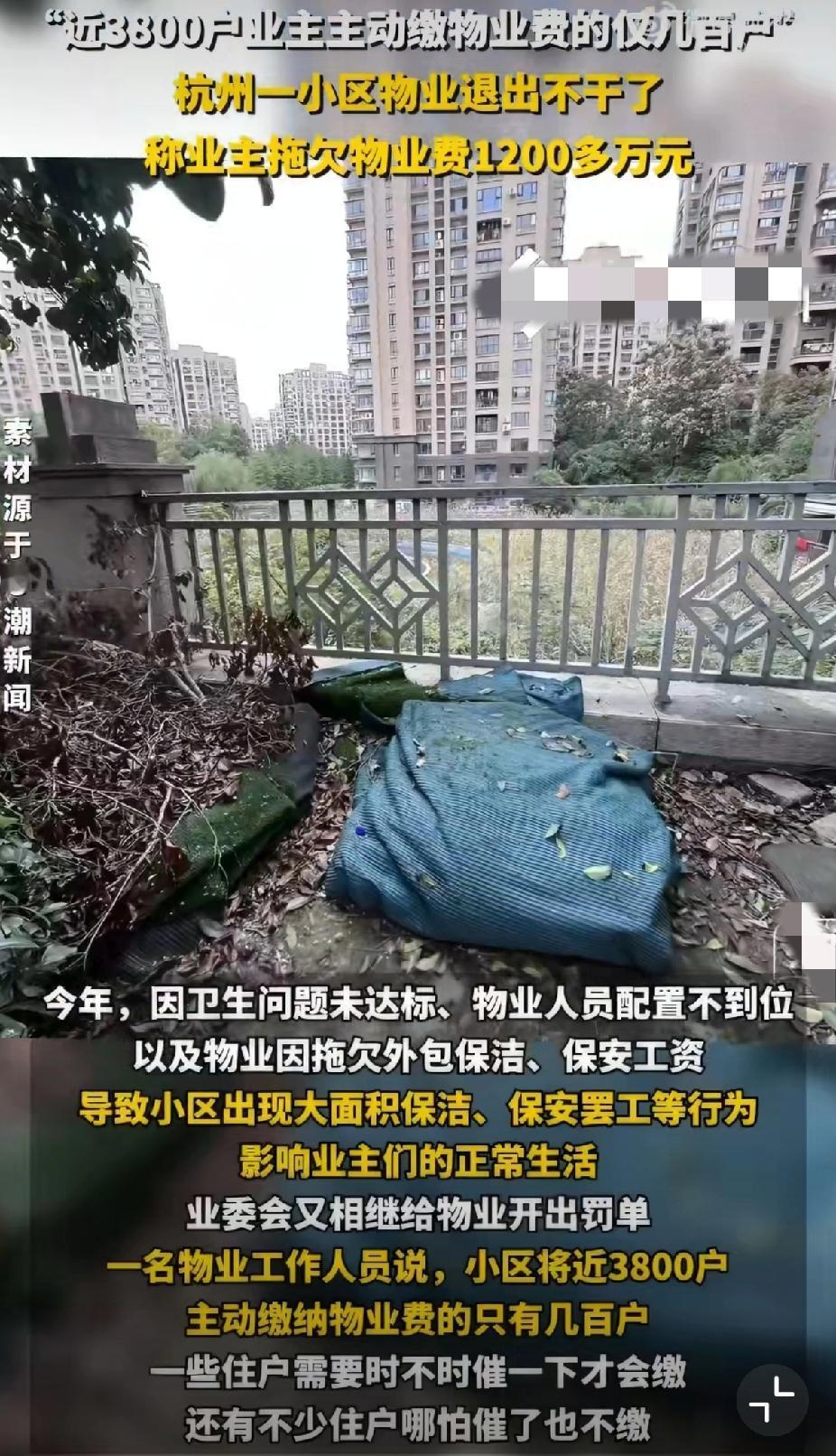 欠1200万物业费!物业直接跑路,业主最后坑了谁? 杭州这小区的事儿太魔幻了!物业发函说被欠1200万物业费,年底直接撤场不干,3800户业主缴费率还不到50%! 业主吐槽物业卫生不达标、人员配置不够,甚至拖欠保洁保安工资导致罢工;物业喊冤收不上钱,只能压缩预算减人手,服务更差又遭拒缴,妥妥的恶性循环!可物业一走,最惨的还是业主——四川有小区先例,物业撤场后垃圾堆成山,电梯停运,30层大娘每天爬60层接送孙子,膝盖都直哆嗦! 其实这事儿没有赢家,物业和业主本是“战友”不是“对手”。现在“小区自治”“良性互动”才是热门趋势,有问题好好谈,该缴费的不拖欠,该整改的不敷衍,才能双赢。 你们小区物业费多少?遇到过物业和业主互撕的情况吗?如果是你,会主动缴物业费吗?来评论区聊聊你的小区故事~ 物业退出 小区那些事 业主与物业 生活吐槽大会