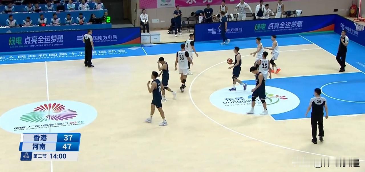 全运会男篮小组赛河南男篮胜香港队锁定小组第三。昨天香港战胜湖北,也使本场比赛成为小组第三之争的比赛。谁取得胜利就占据小组第三的位置。首节开始,河南队一直压制香港队,保持个位数的领先优势。首节结束河南队22:15领先。次节香港队顽强拼搏,试图缩小分差,但河南队内外开花,一直保持领先。半场结束。河南队47:37继续领先。第三节香港队失误增加,河南队连续快速反击得手。香港队暂停回来后连续命中高炮台,河南队及时予以回应,保持领先优势。三节战罢。河南队71:54继续领先。第四节香港队连续高炮台命中,缩小分差,河南队叫暂停。暂停回来,河南队没有再给香港队机会,将优势转化为胜利。全场比赛结束,河南队92:74战胜香港队,锁定小组第三。