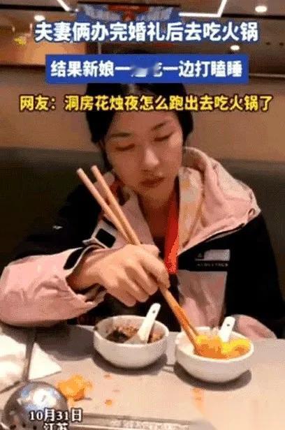 《婚姻里,最浪漫的是看对方睡着后你还在默默吃着剩菜》婚礼结束后,新娘饿得冲进火锅店,没吃几口就睡着了。 评论区有人调侃,这对新人不长久,因为新娘一上火锅店就睡着了。显然是没经历过婚姻的人。 结婚是什么?结婚就是一场给七大姑八大姨看的高强度真人秀,所有的准备只为让亲友们满意。新娘婚礼当天妆容虽然精致,但明显精神不济,早已疲惫不堪。 新郎则被亲友们灌酒,醉得不省人事。婚礼上的美食丰盛,但只是给宾客的道具。真正的幸福,是婚礼结束后,新娘打了个哈欠,两口吃了几块牛肉,就睡着了。 新郎静静地坐在一旁看着睡着的妻子,心里满是宠溺,而他吃剩的菜,就是剩下那份默契和理解。两人不用多说,心里就有数。这,就是浪漫! 真实的浪漫,不是你吃饭我喂你,是你忙碌我懂你疲惫,所以默默吃着剩菜。 婚姻里的幸福,不在于你为我搭建多少奢华的场所,而在于你为我留心每一个细微的生活细节。 麻烦看官老爷们右上角点击一下“关注”,既方便您进行讨论和分享,又能给您带来不一样的参与感,感谢您的支持!