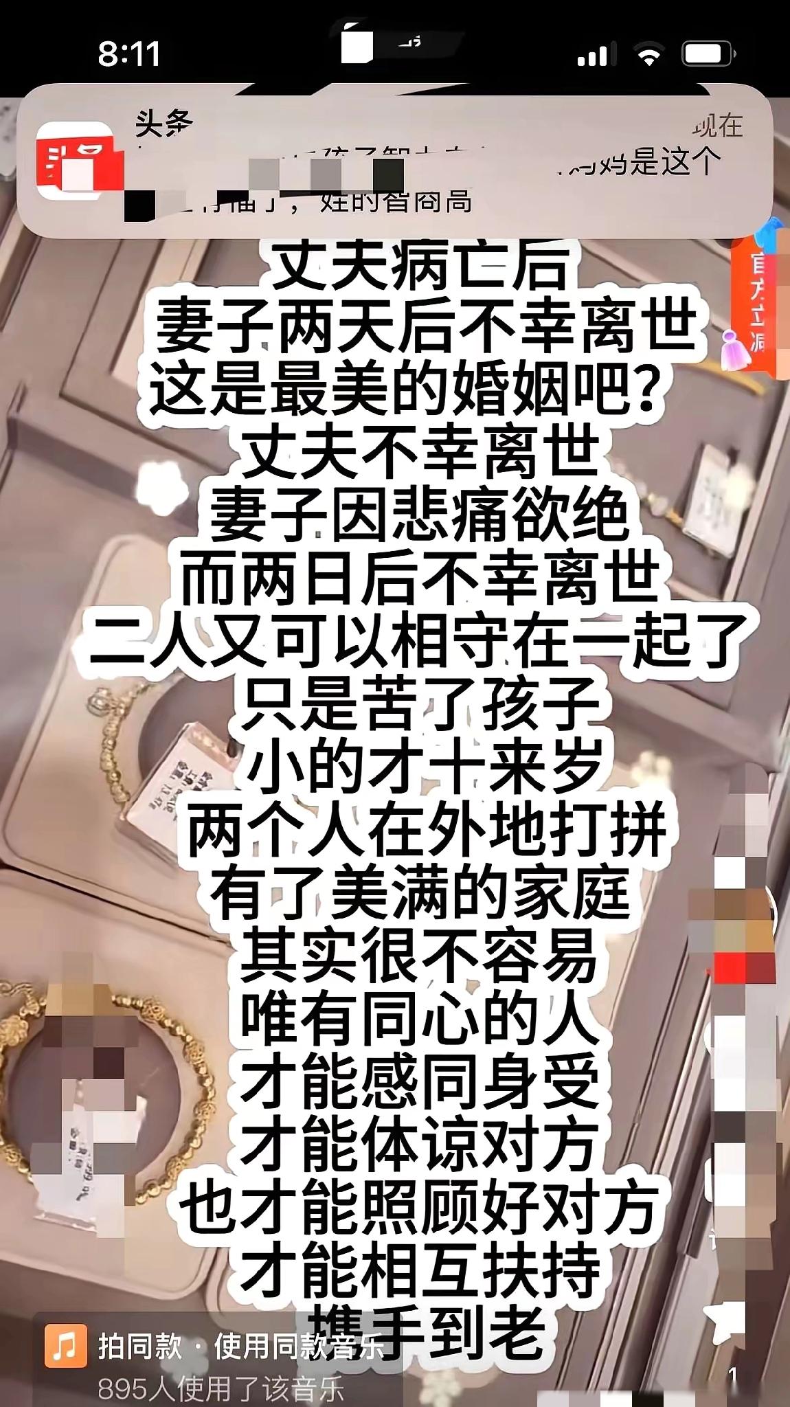 “情深不寿”或许是对这对老夫妻最好的诠释,热搜上显示她俩只相差两天就去世了,一个是因为急病发作,一个是因为心脏病发作,两人感情深厚,相依相伴了五十几年,令人十分感慨。 相较于这两位老人的感情,我更想谈一谈我自己的感情状态,虽然我有伴儿,但是我并不喜欢我伴儿的健康,我伴儿也并不喜欢我健康,我们两个都喜欢有的没的。 说起来我伴儿的存在感有点压迫感,我时常觉得要是没有了这个压迫感,我的生活会轻松很多,可我又没办法真的失去这个压迫感,因为我们两个在一起的时候又很快乐。 人际关系有很多种,有的如这对老夫妻一般,相互扶持,共同面对生活的苦难;有的如我和伴儿一般,互为干粮,有时也会产生一些摩擦,但总之还是各取所需,彼此不缺。 你们的感情状态是怎样的呢? 麻烦看官老爷们右上角点击一下“关注”,既方便您进行讨论和分享,又能给您带来不一样的参与感,感谢您的支持!