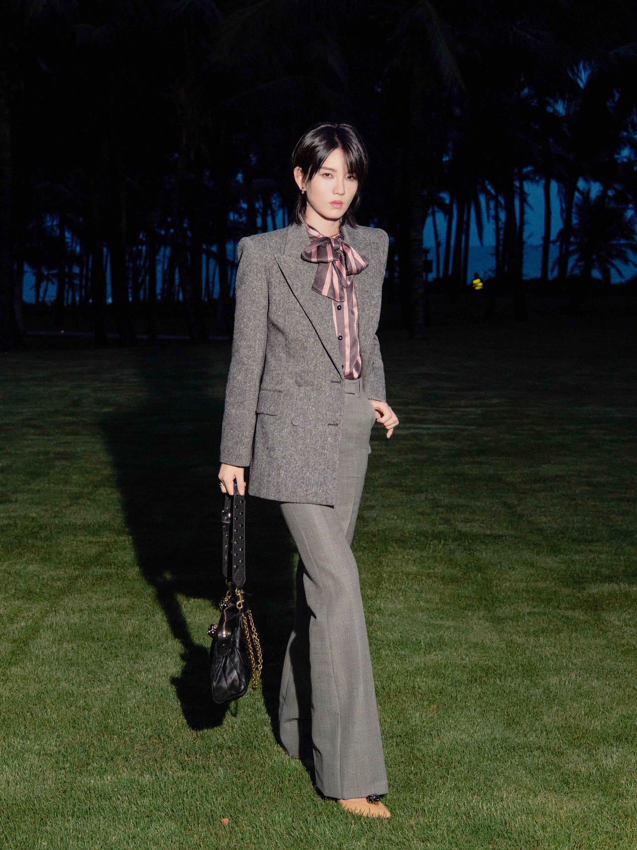 近期的时尚和影视盛典更是留下了深刻印象 —— 从文荣奖红毯上令人过目不忘的 Valentino 格纹套装搭配 Qeelin 珠宝 ,利落中见矜贵 ;到 ELLE 风尚大典气场全开的 Prada 造型 ,化身海边的清爽酷女孩登场 ,FENDI 新装叠搭 BVLGARI 珠宝则展现优雅摩登张力 ,更有一套 Rick Owens 的先锋造型尽显时装驾驭力 ,每一套的演绎都彰显了自己的 Vibe ,也精准传递出她独特的时尚语言 ~