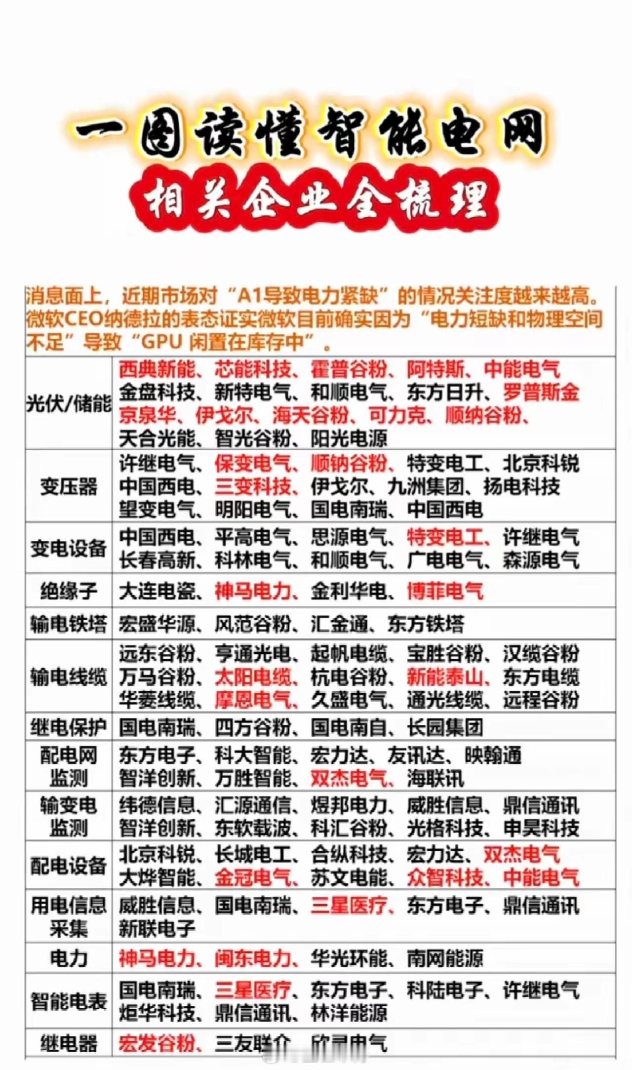 当微软的GPU因“电力不够”躺平在库存里,“能源供给”突然成了科技与产业的共同痛点——而能破解这一困局的智能电网,正带着全产业链企业集体站上行情风口。