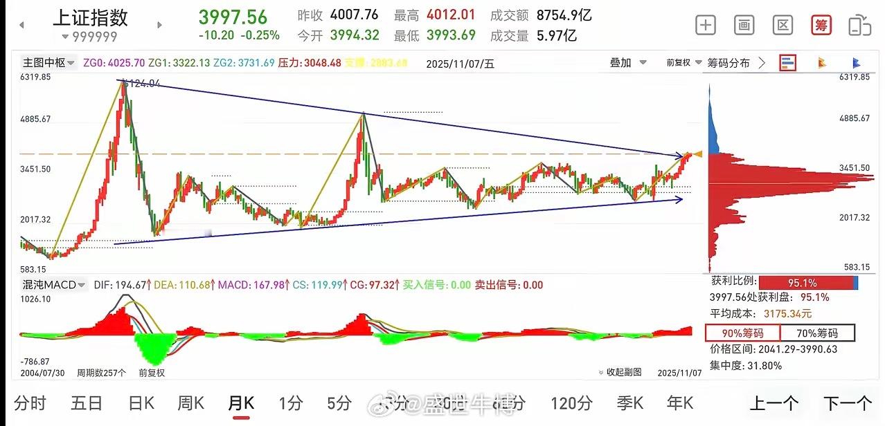 上证月线已然突破6124与5178连线所形成的长期下降趋势线。从理论层面而言,上证月线大顶有望突破5000点。