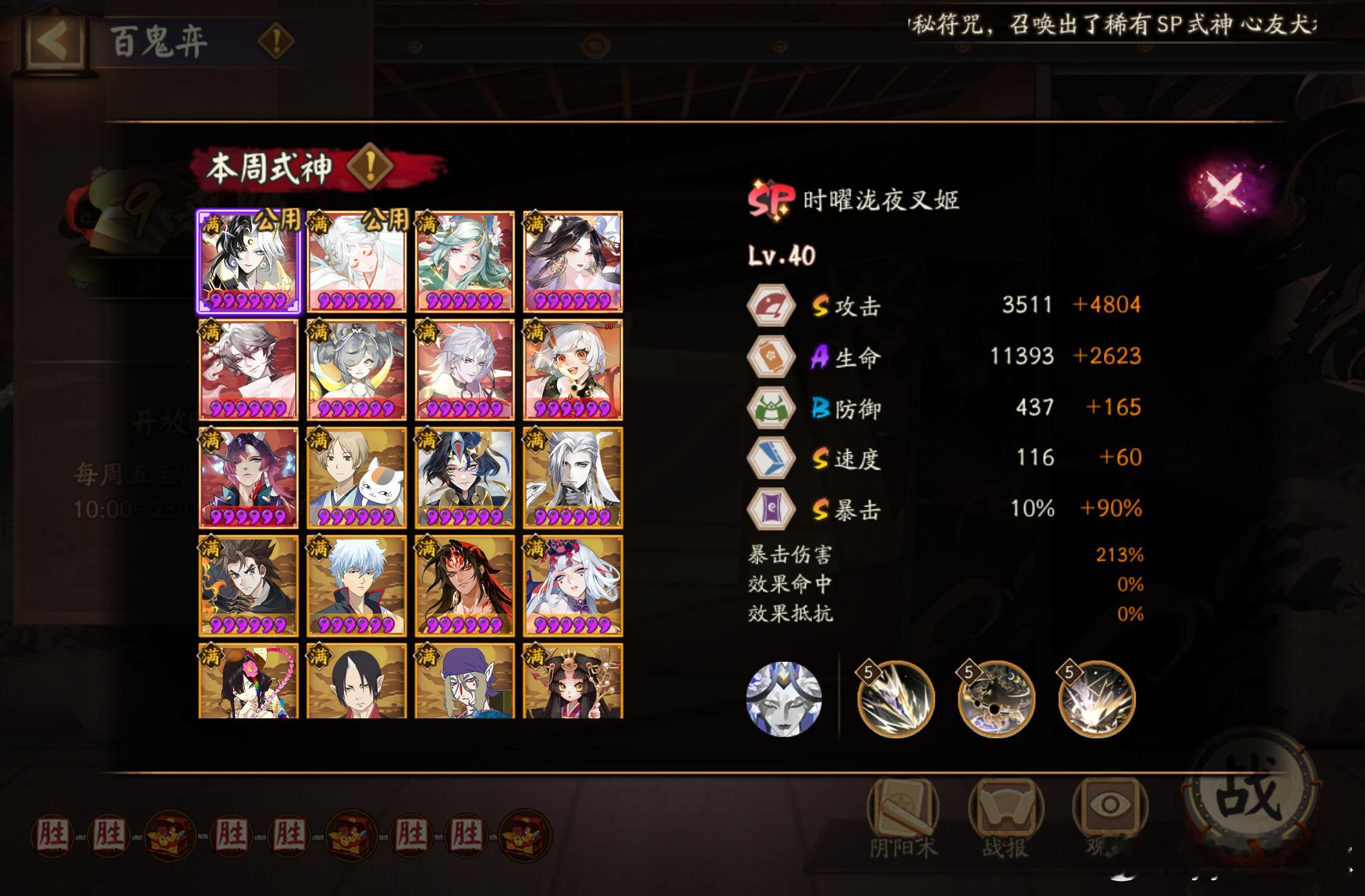 ■本周有一速也不一定能一下子击杀对面sp叉姬,最好能有保护/控制式神稳一手