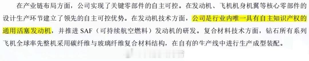 技术层面,公司自主可控优势突出:拥有行业唯一具有自主知识产权的通用活塞发动机,在发动机、机身等关键零部件领域实现自主化;首款电动固定翼飞机eDA40是全球首款申请EASA认证的直流快充电动飞机,可实现“充电20分钟、续航1.5小时”。2024年,公司MPP系列特种机型订单突破,成功切入遥感探测、应急救援等高附加值场景。