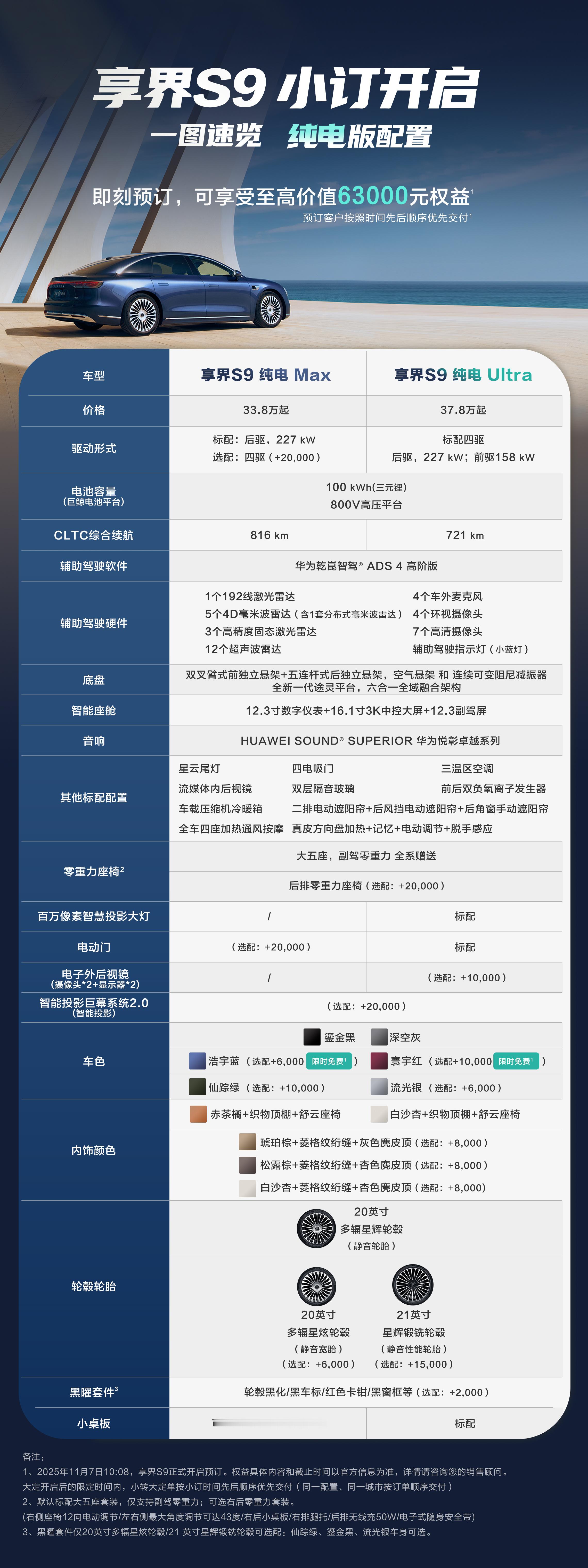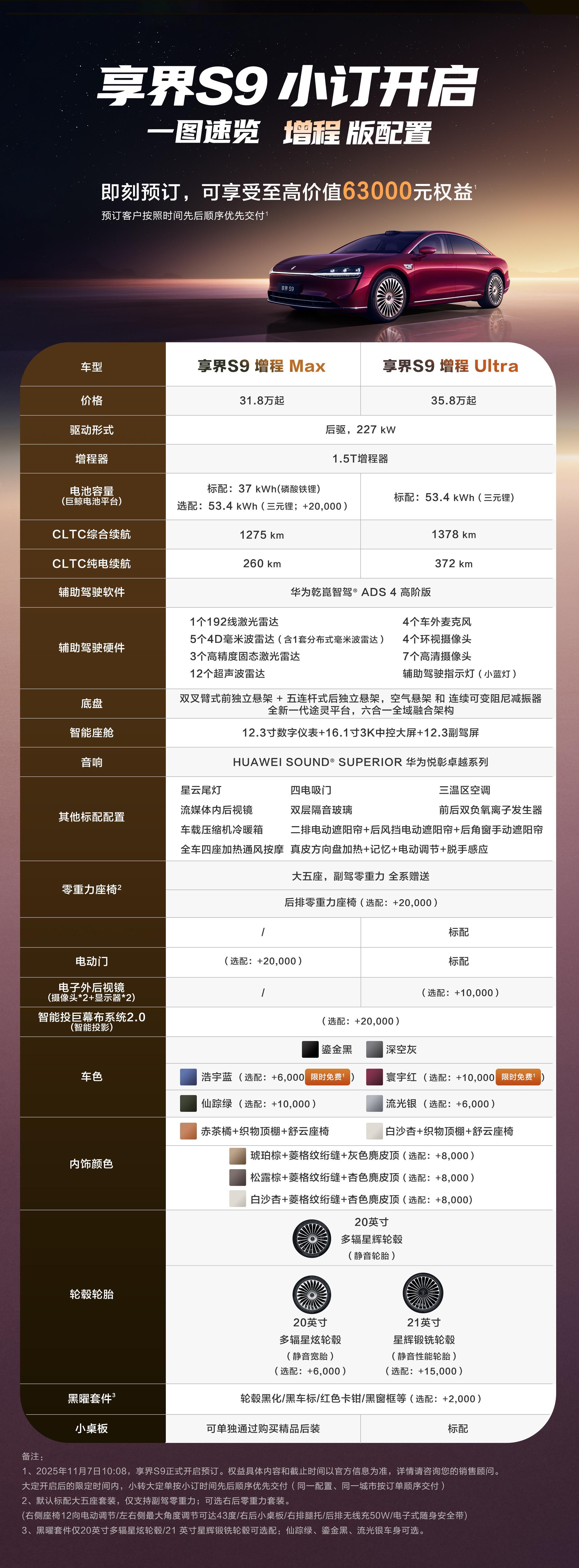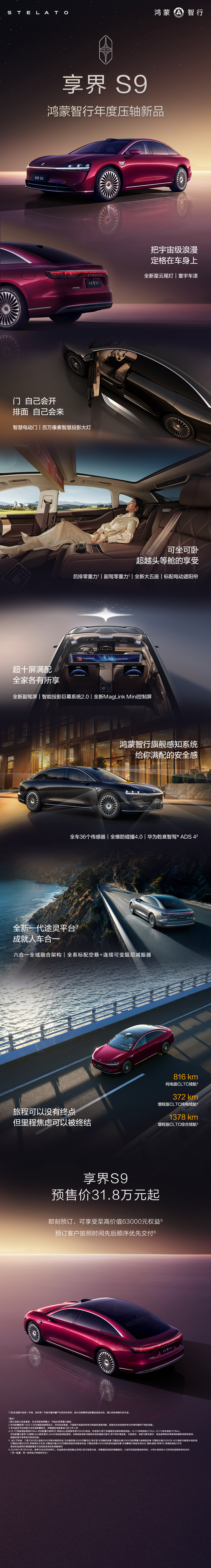 长图看配置新款享界S9正式开启小订 31.8万开启小订。漂亮的尾灯来了,电动门也来了。