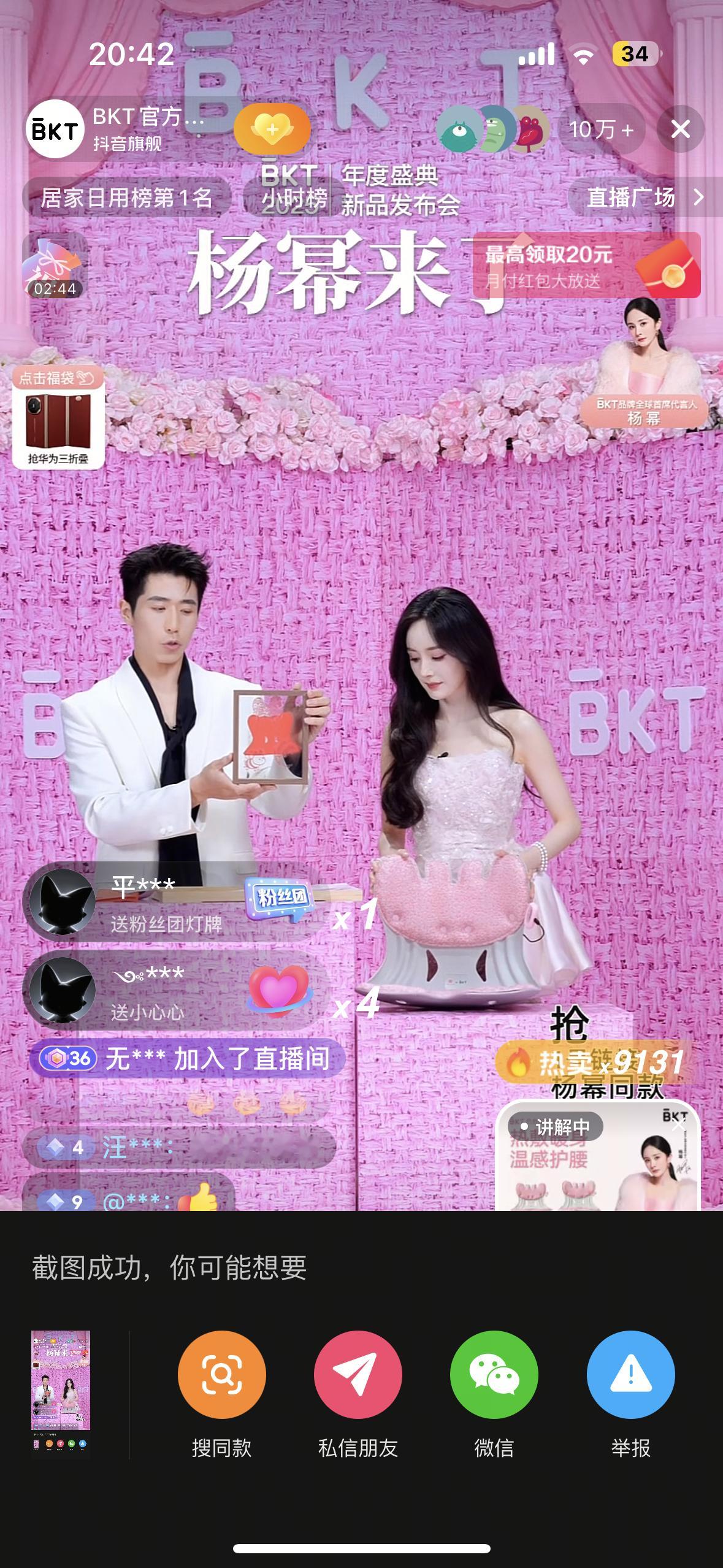 杨幂今晚BKT直播在线人数达10w!!