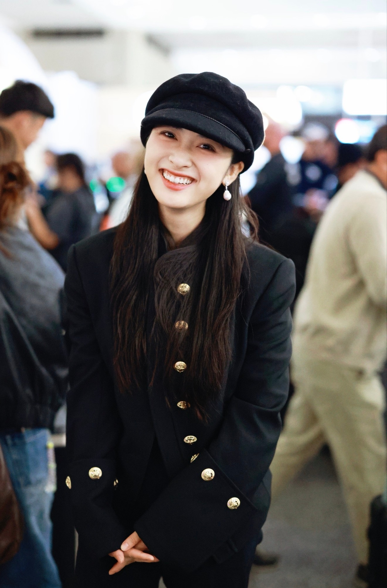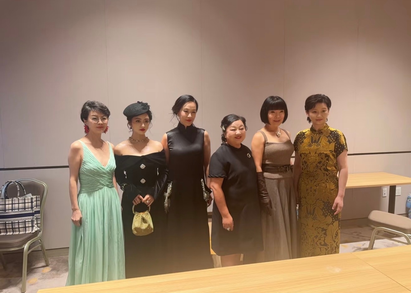 张天爱跟素人合影,胯真的好宽,大宅院似的