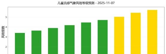 【儿童流感气象风险等级预报】 受冷空气影响,预计11月7日至9日我市将出现降温过程,最低气温下降4-6℃,诱发儿童流感传播风险上升。网页链接