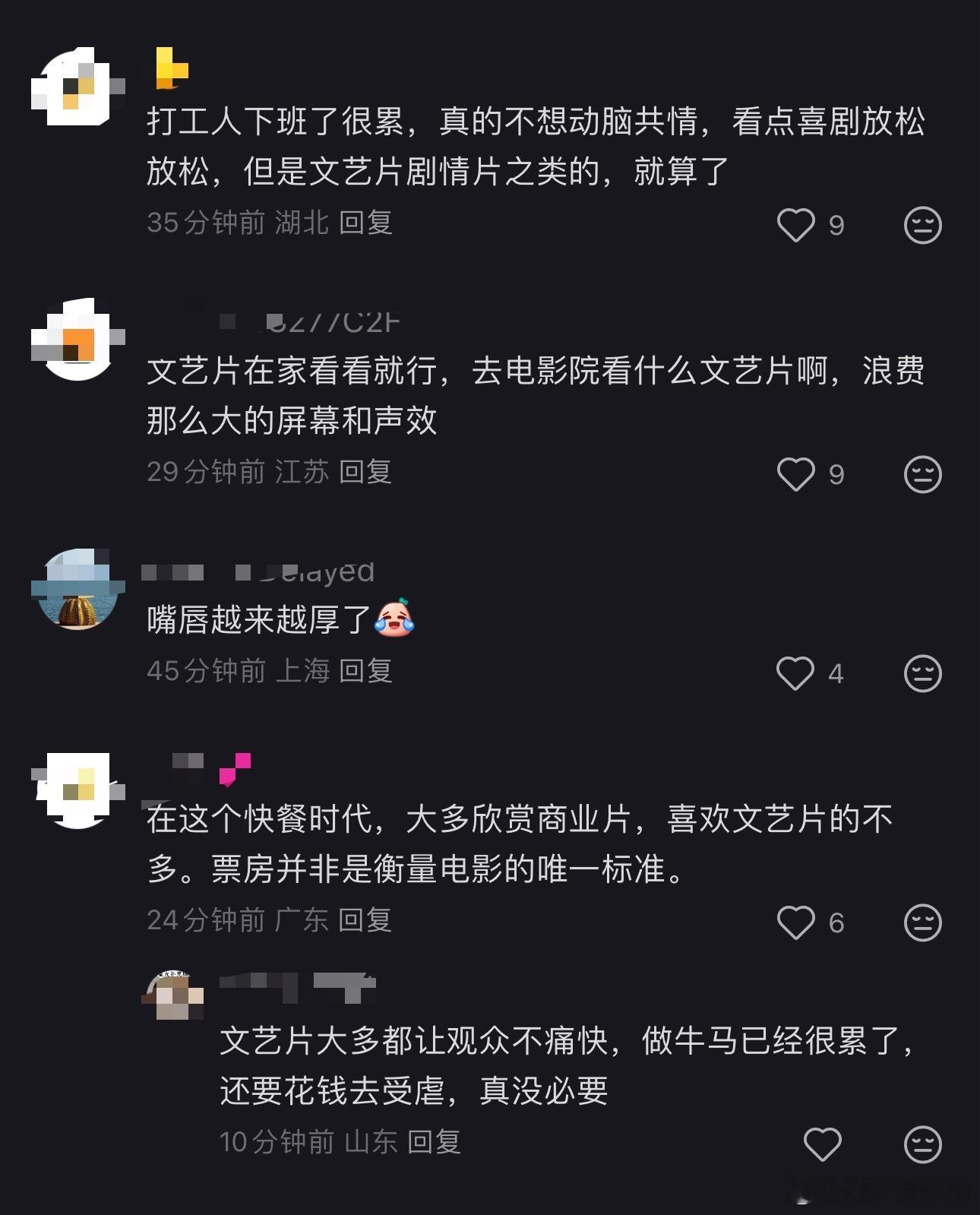 “打工人下班了很累,真的不想动脑共情,看点喜剧放松放松,但是文艺片剧情片之类的,就算了”