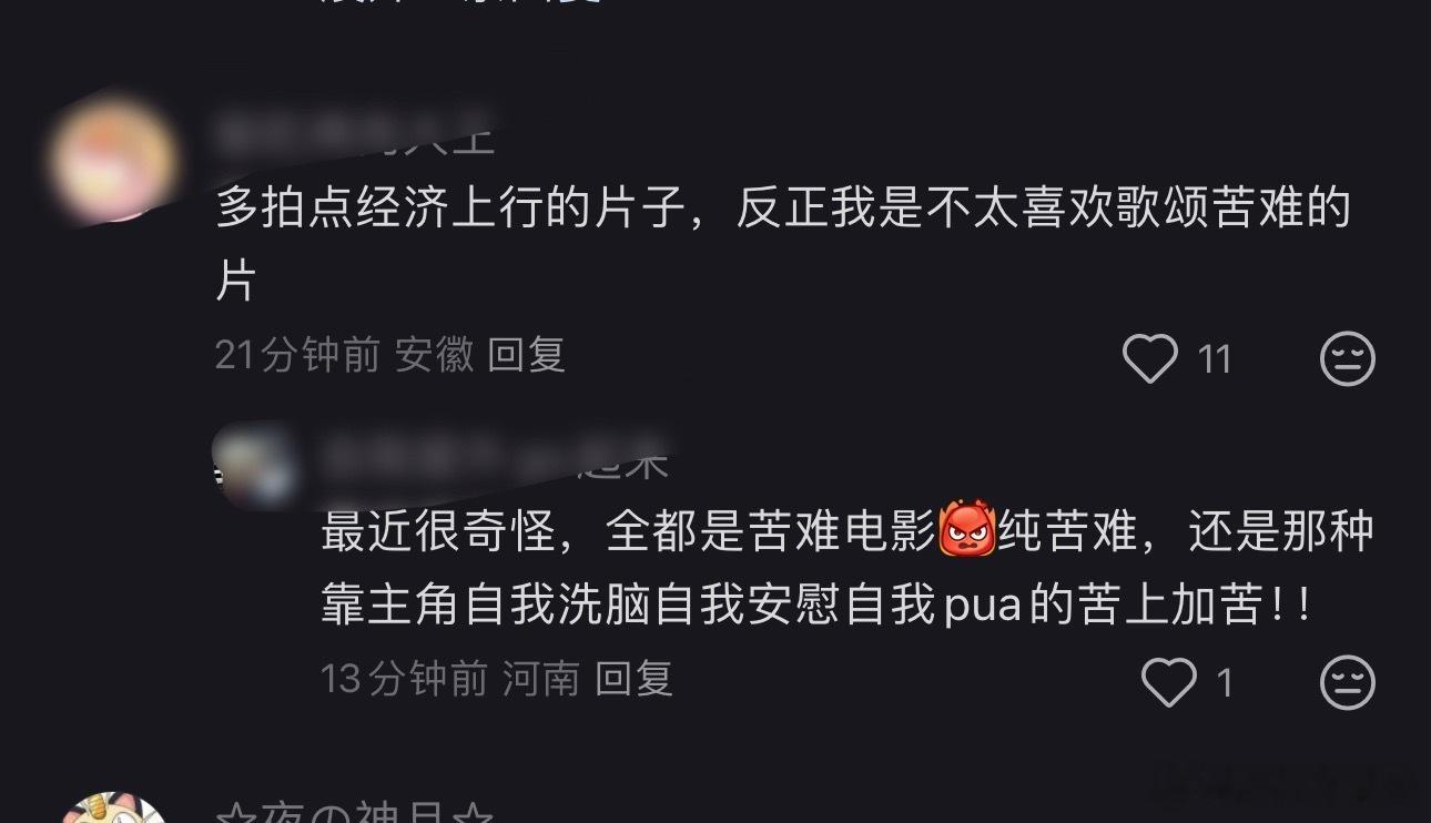 “多拍点经济上行的片子,反正我是不太喜欢歌颂苦难的片子”