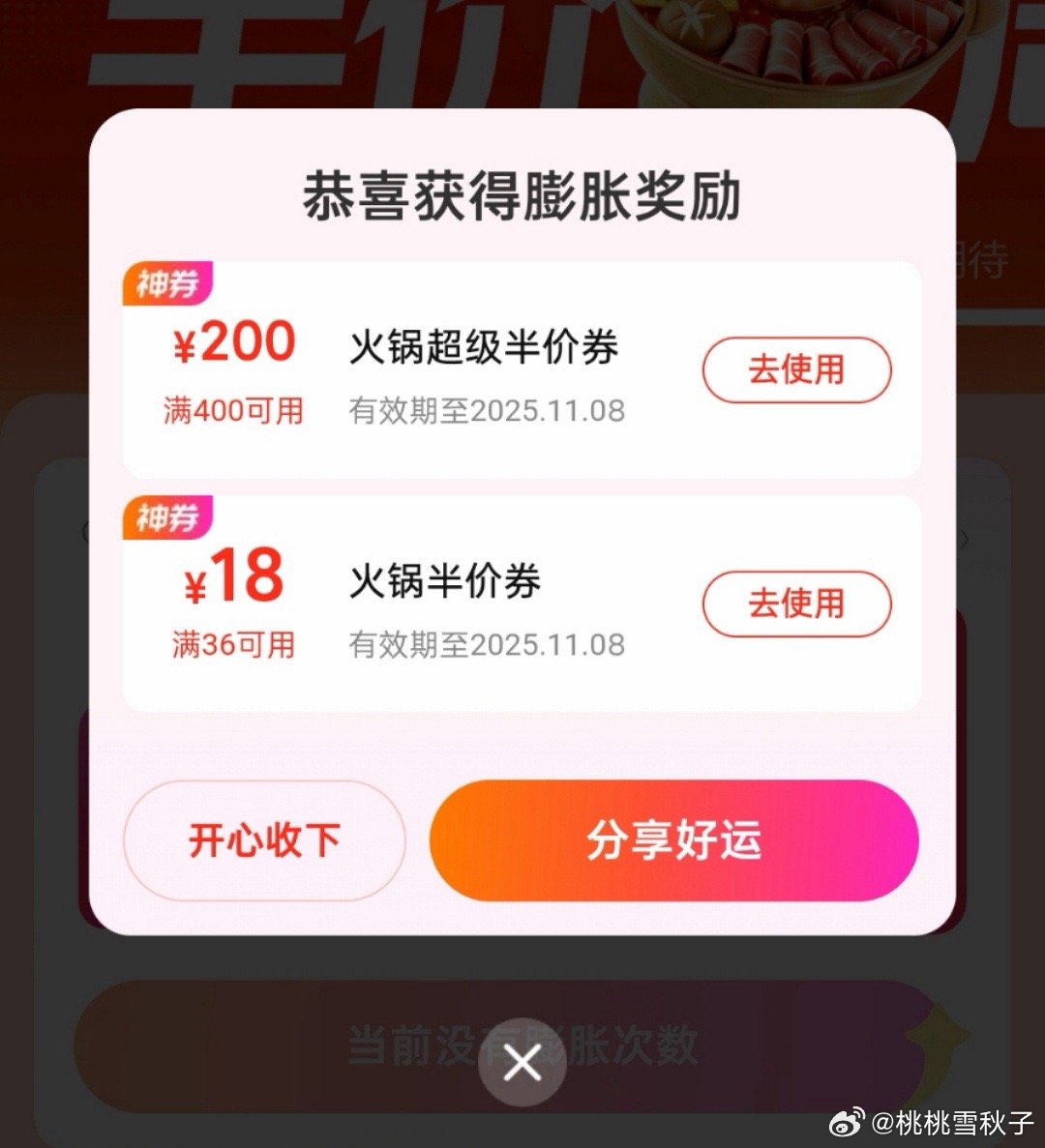 🧧【火锅神券】,只要点开,人人必得18元,膨胀之后最高可得400-200神券!!