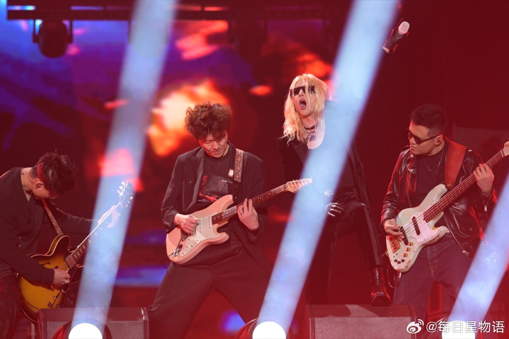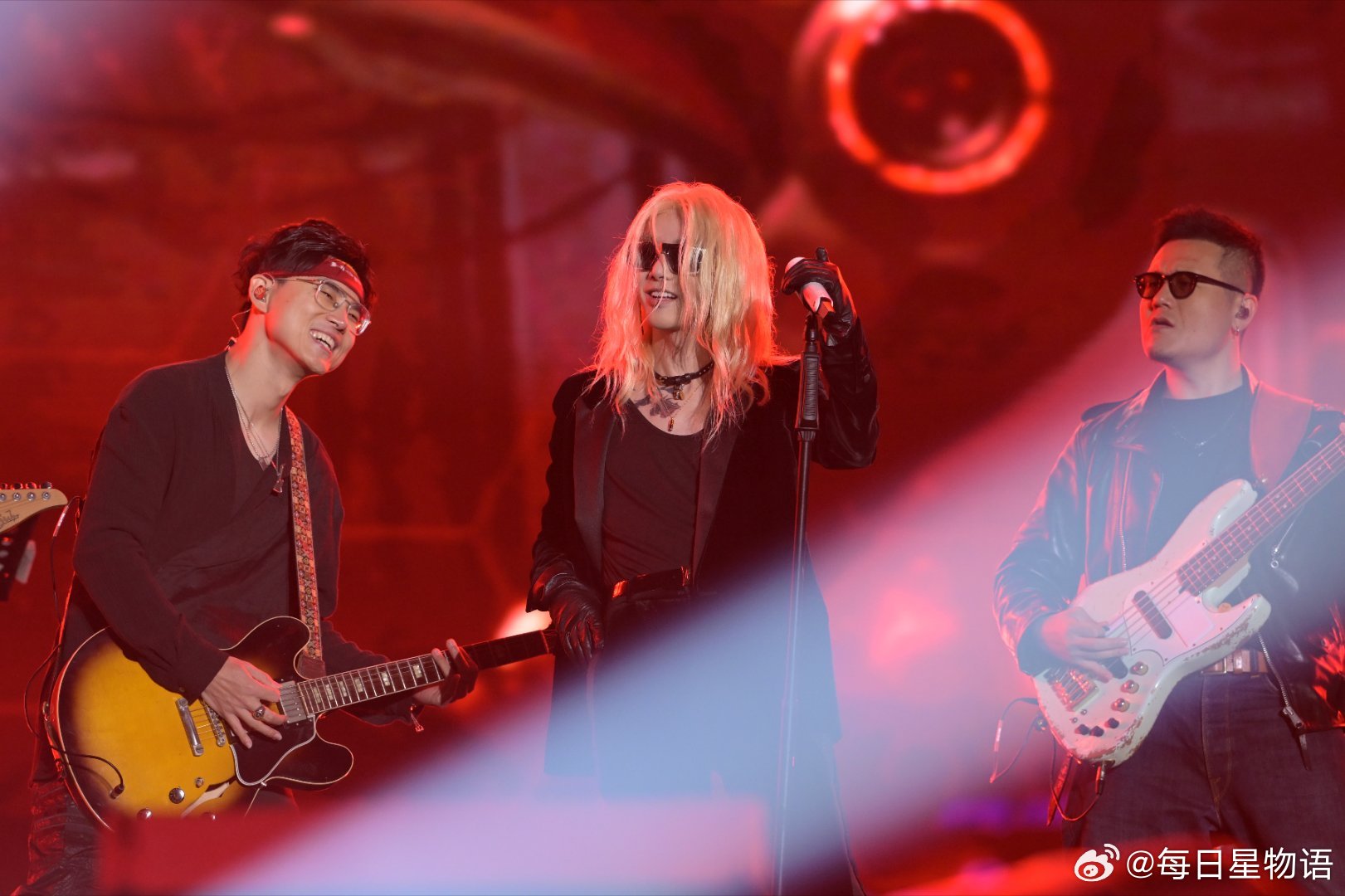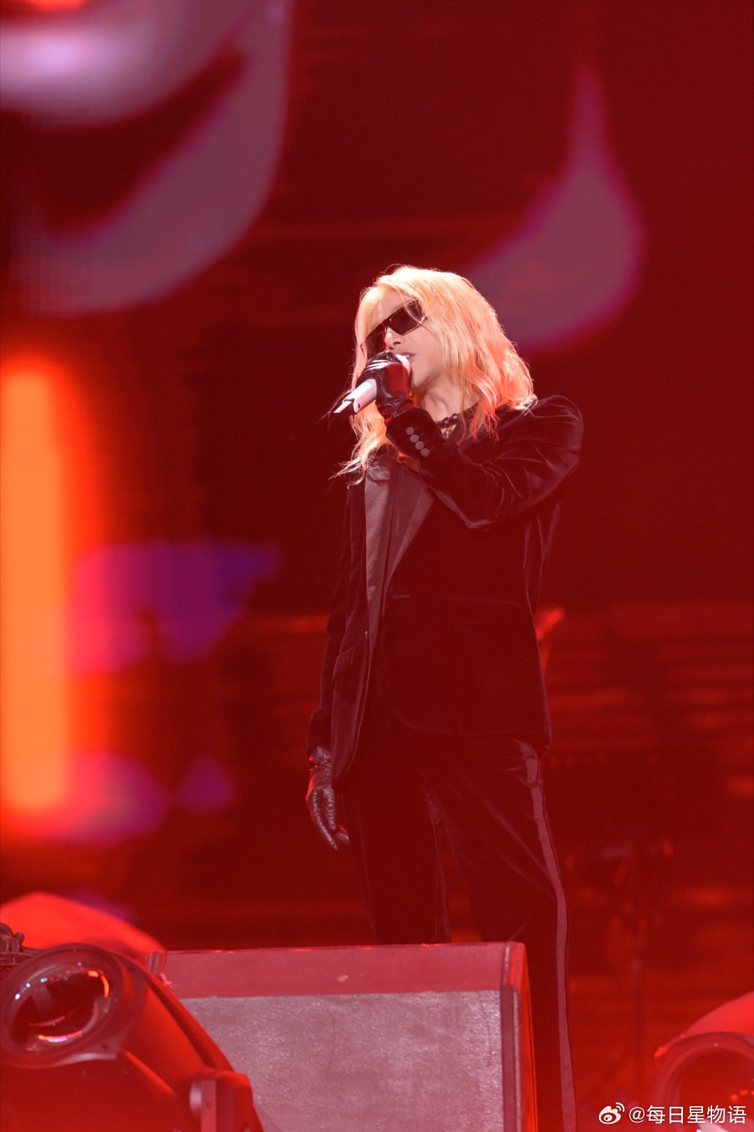 华晨宇 金发王子 极致黑金,视觉的绝对冲击!一身全黑战袍,衬得金色长发如瀑流泻,而颈间一抹chocker更是点睛之笔,将不羁与贵气完美锁定。他是暗夜中燃烧的金色火焰,每一眼都让人深陷!