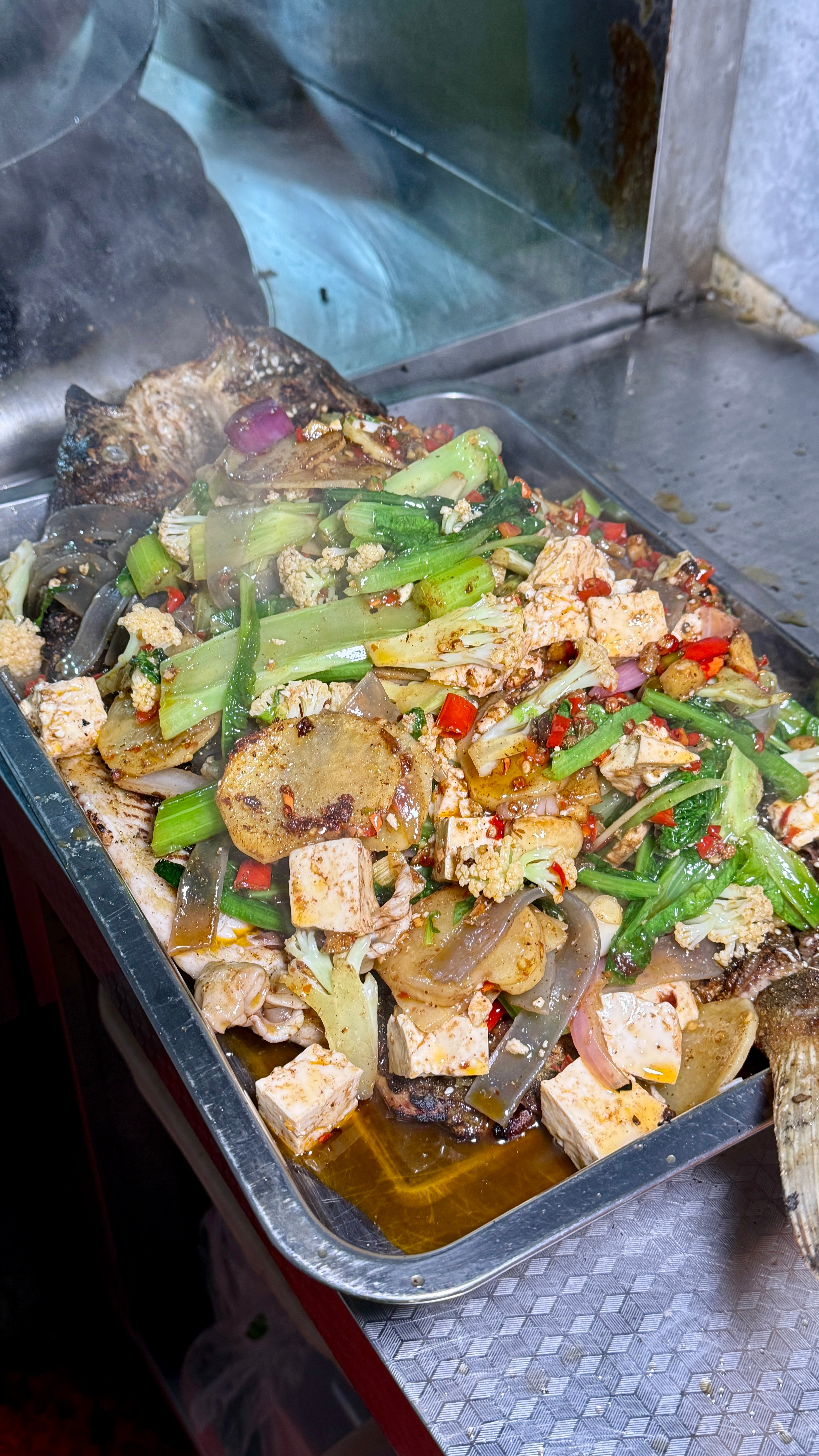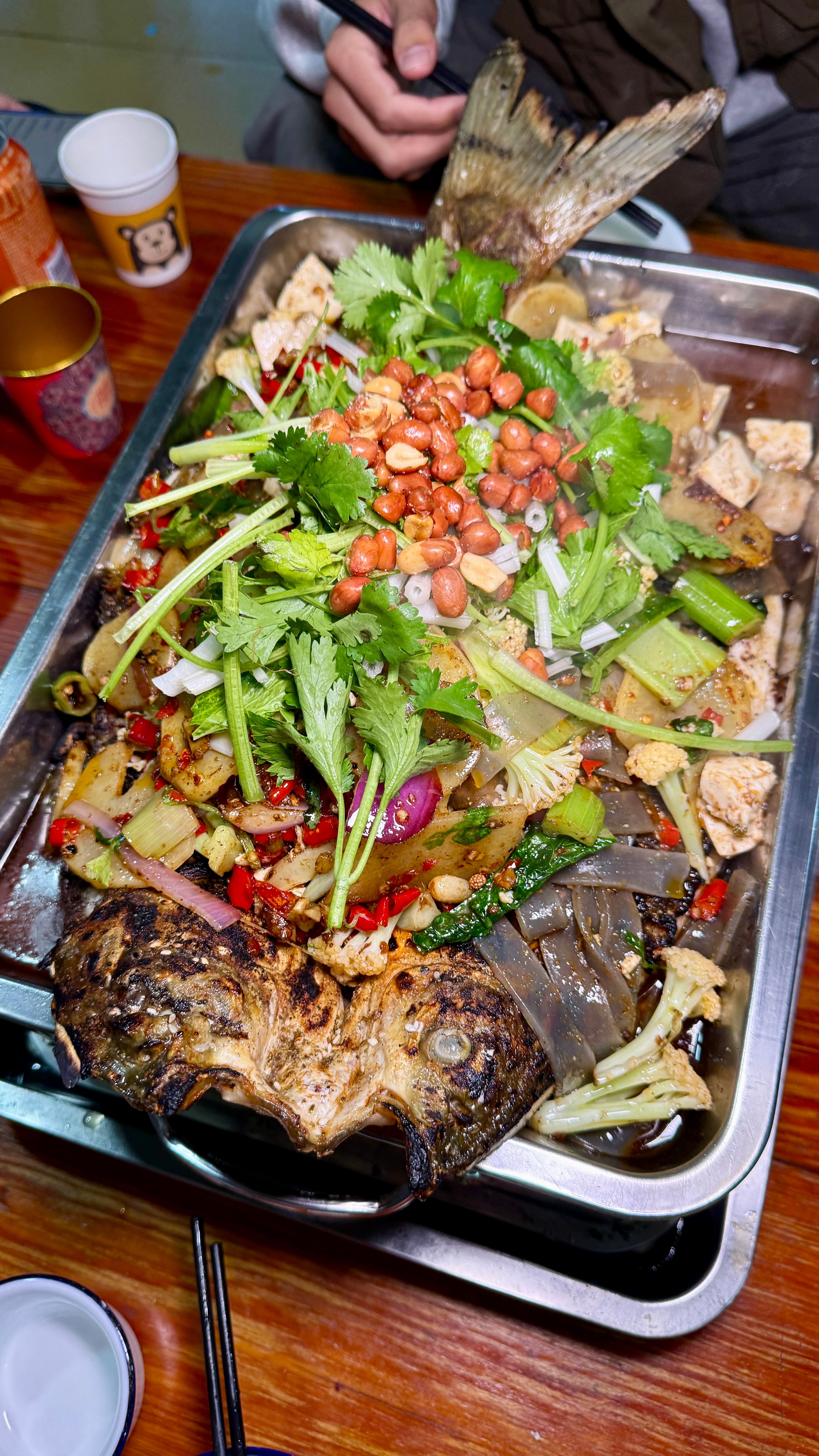 我是在丽江做了13年纯玩旅游古城开客栈“豆花名宿”的四川人,经常发掘丽江好吃的店带客人去尝,今天推荐的是寨后下村巷子里那家开了十几年的重庆炭火烤鱼破店。活鱼现杀、炭火烤制非油炸,料现炒,5斤多的草鱼配5个配菜,外焦里嫩入味不咸,蔬菜和蒜也超绝,拌着米饭吃绝了。环境普通但人气爆棚,本地人都爱。我常带客人来,爱吃烟火气烤鱼的,跟我这个四川老板来准没错!💰我们5个人吃了¥215,人均40,那种带客人吃饭拿回扣的事我不干,我给客人推荐好吃为主!丽江美食豆花名宿吃货团云南旅游攻略君