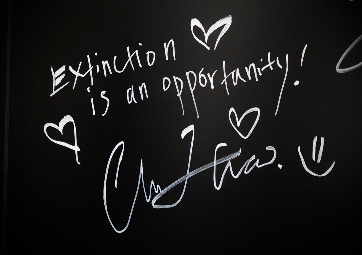 赵婷造访了小岛秀夫的工作室并留言:Extinction is an opportunity(灭绝是一种机会)